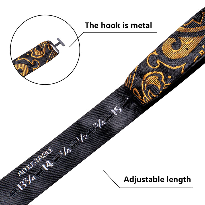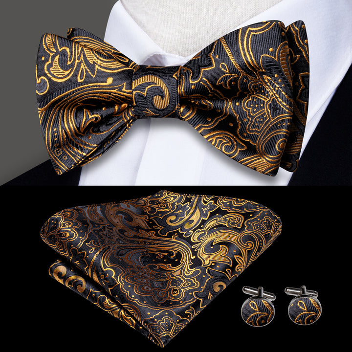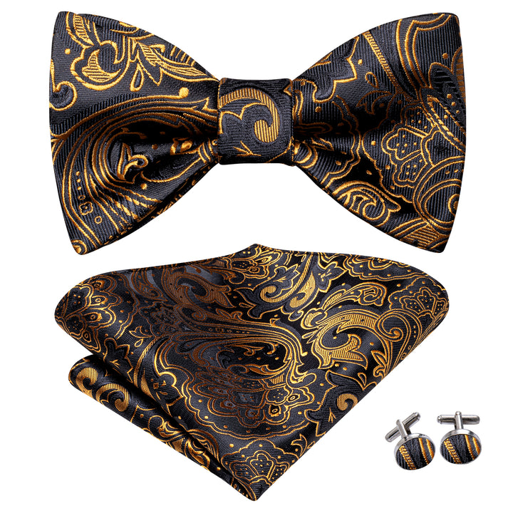 Ties2you Gold Paisley Bowtie Self-tie Black Bow Tie Handkerchief Cufflinks Set