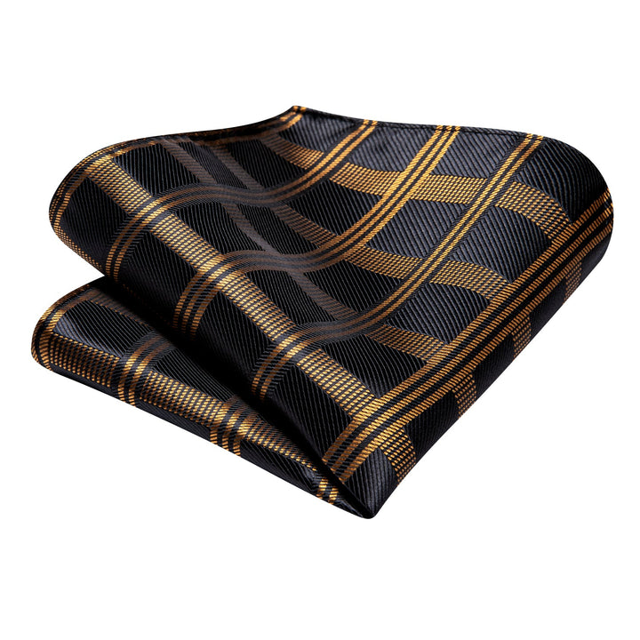 Black Golden Striped Men's Necktie Hanky Cufflinks Set