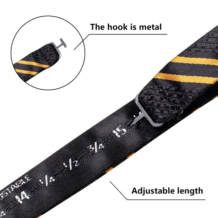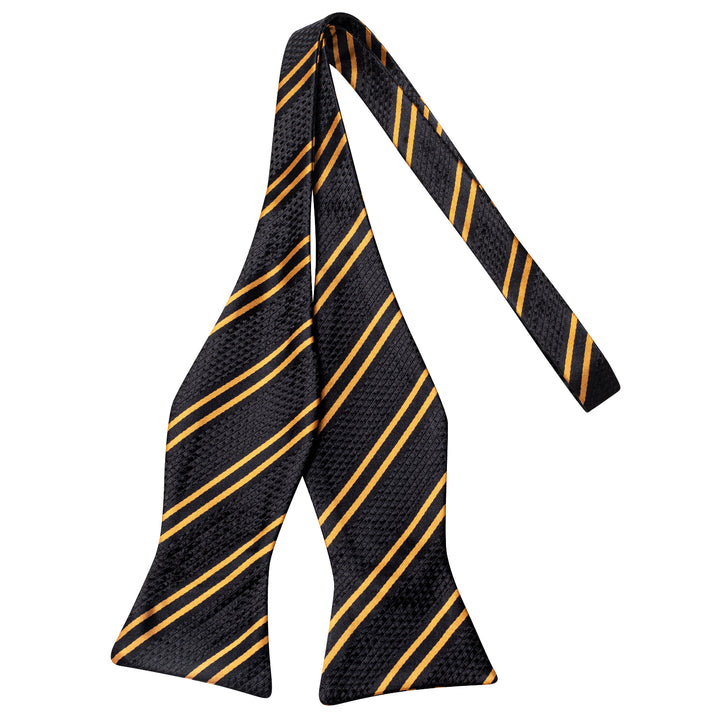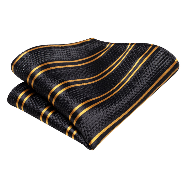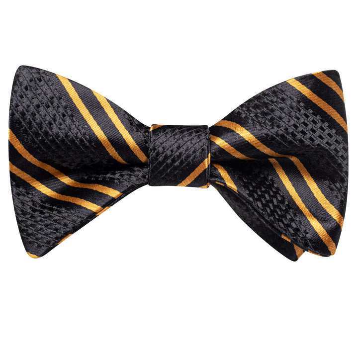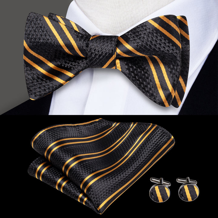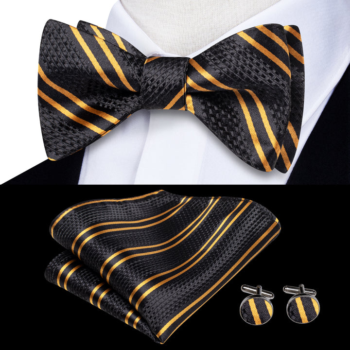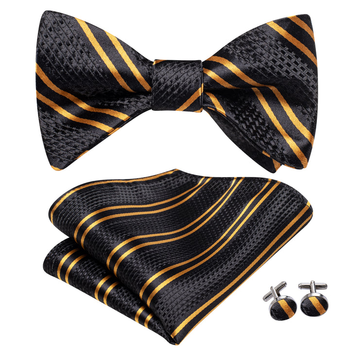 Black Golden Striped Self-tied Bow Tie Pocket Square Cufflinks Set