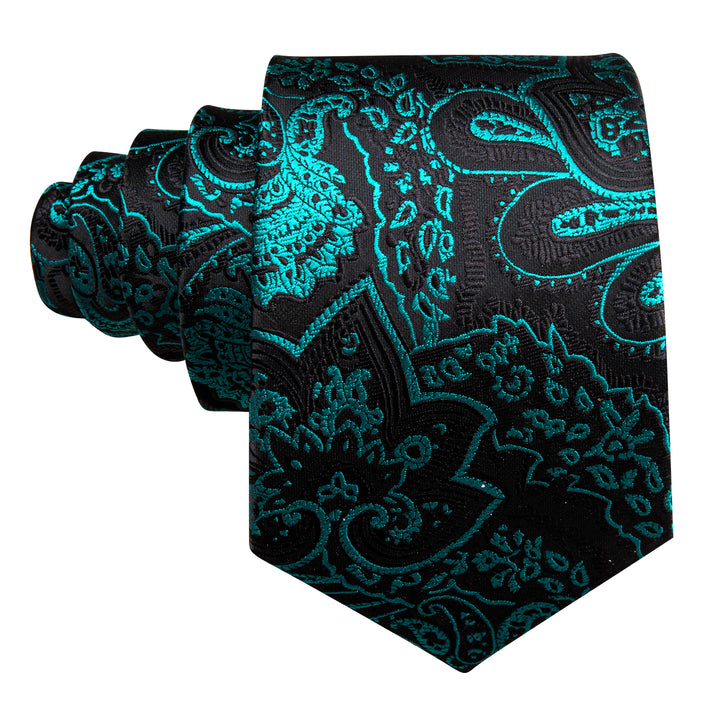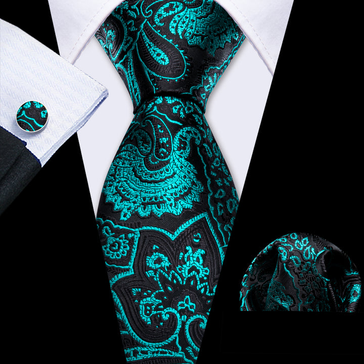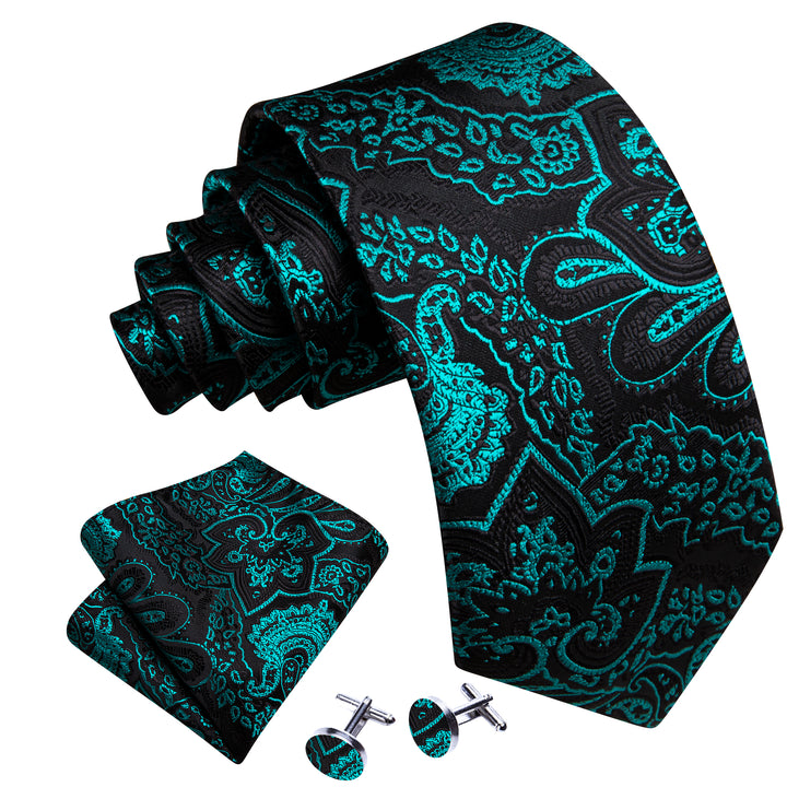 Black Nile Blue Floral Men's Necktie Pocket Square Cufflinks Set