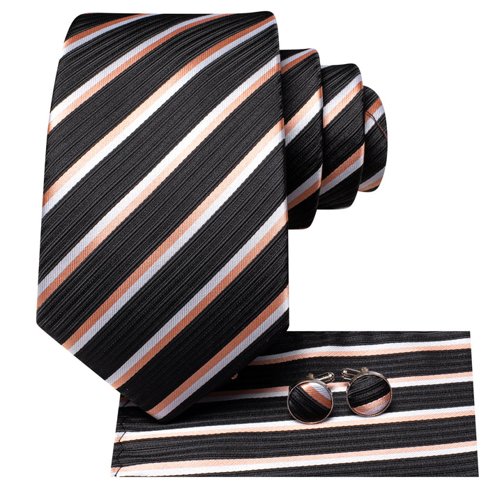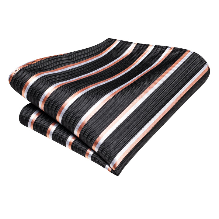 Black Pink Striped Tie Pocket Square Cufflinks Set