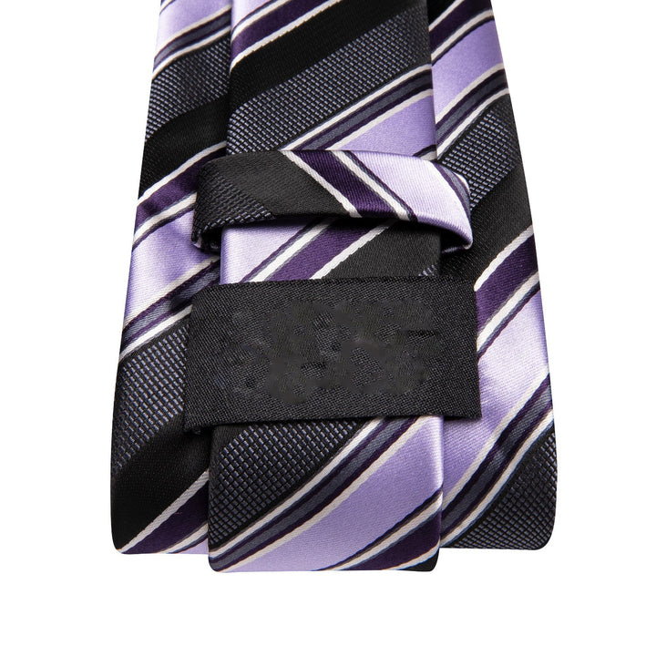 Black Purple Striped Men's Necktie Pocket Square Cufflinks Set