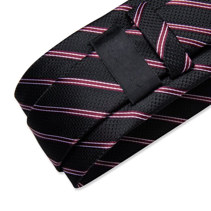 Black Red Striped Men's Necktie Pocket Square Cufflinks Set with Lapel Pin