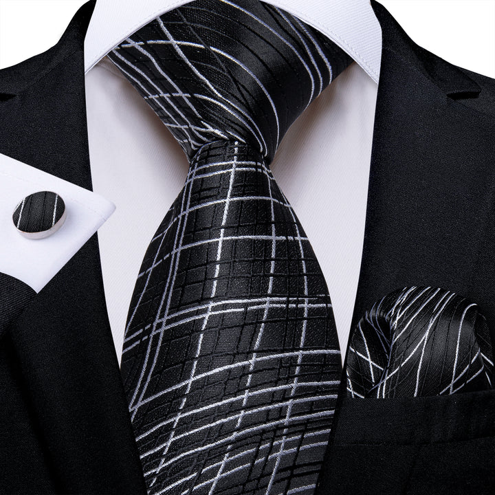 Black White Novelty Silk Men's Tie Hanky Cufflinks Set
