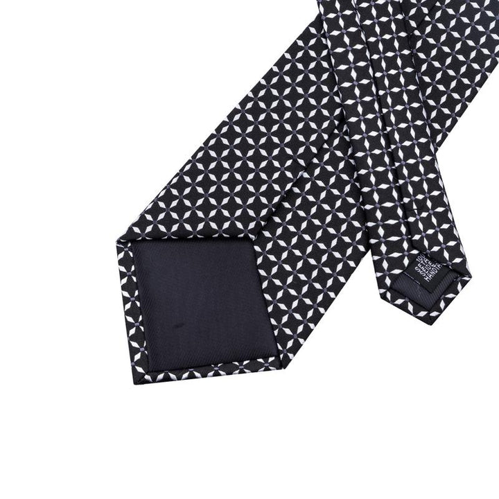Black White Plaid Silk Men's 63 Inches Extra Long Tie Pocket Square Cufflinks Set