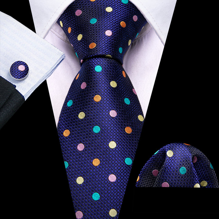 white striped black podalt dot silk mens tie pocket square cufflinks set