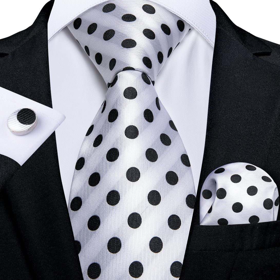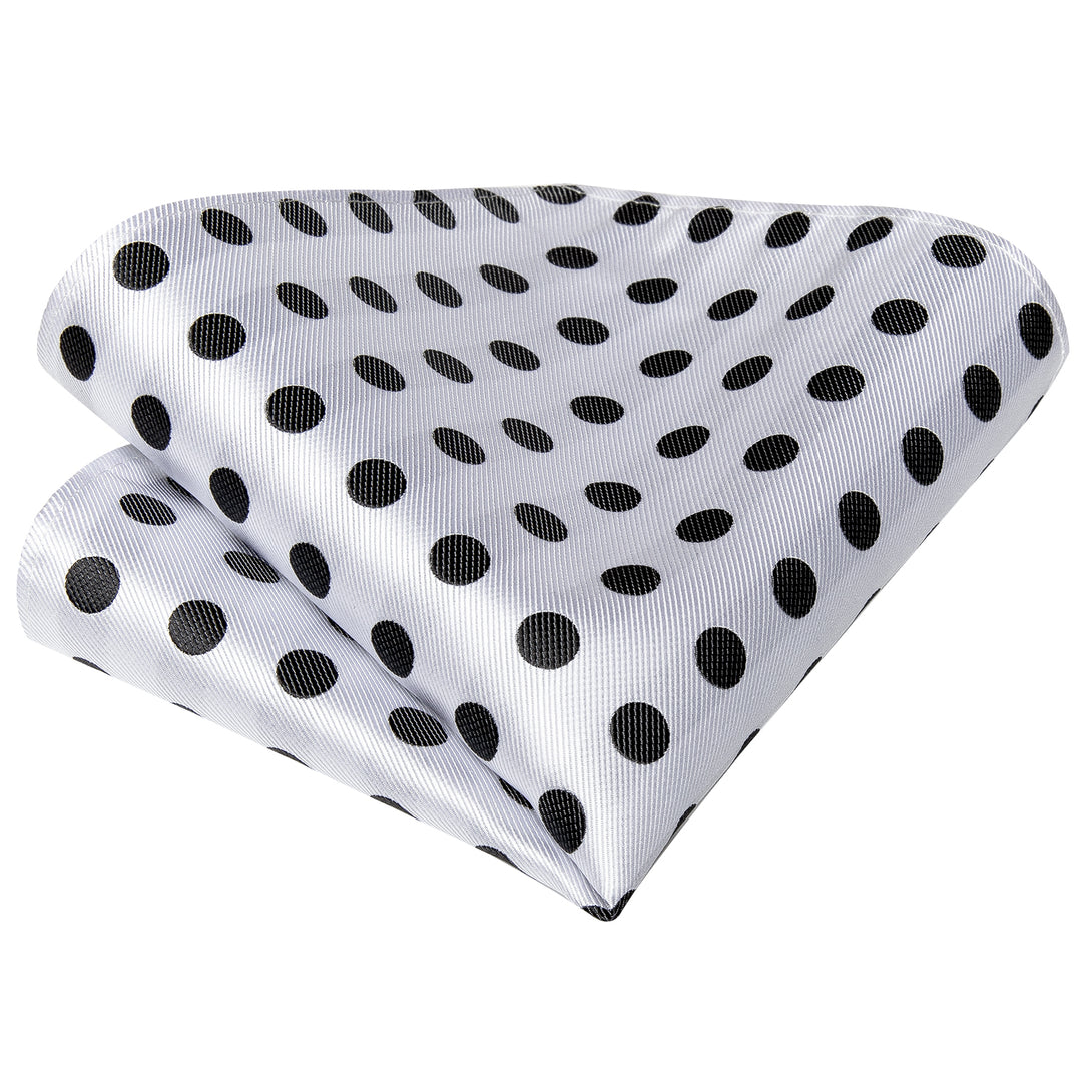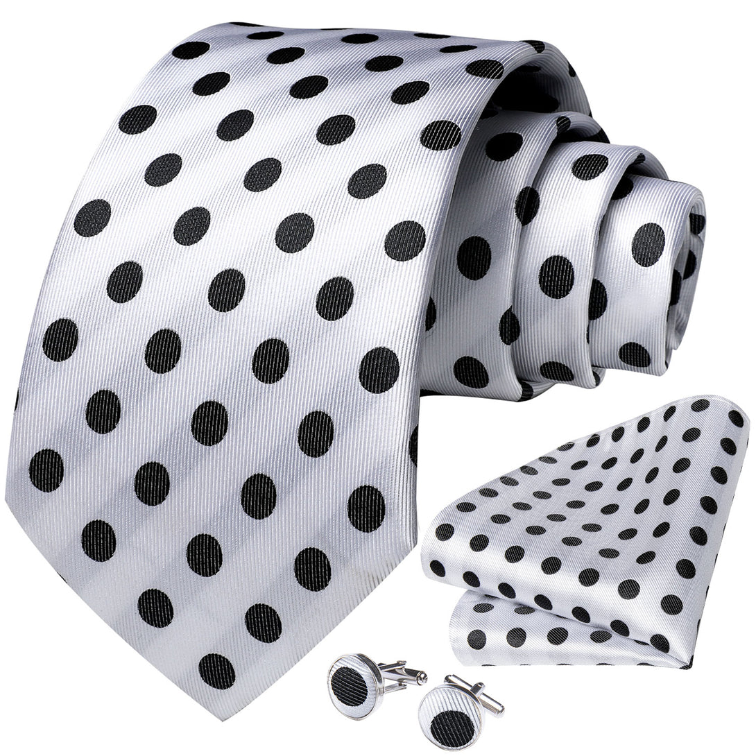 Ties2you Mens White Tie Set Silk Polka Dot Woven Necktie Pocket Square Cufflinks Set