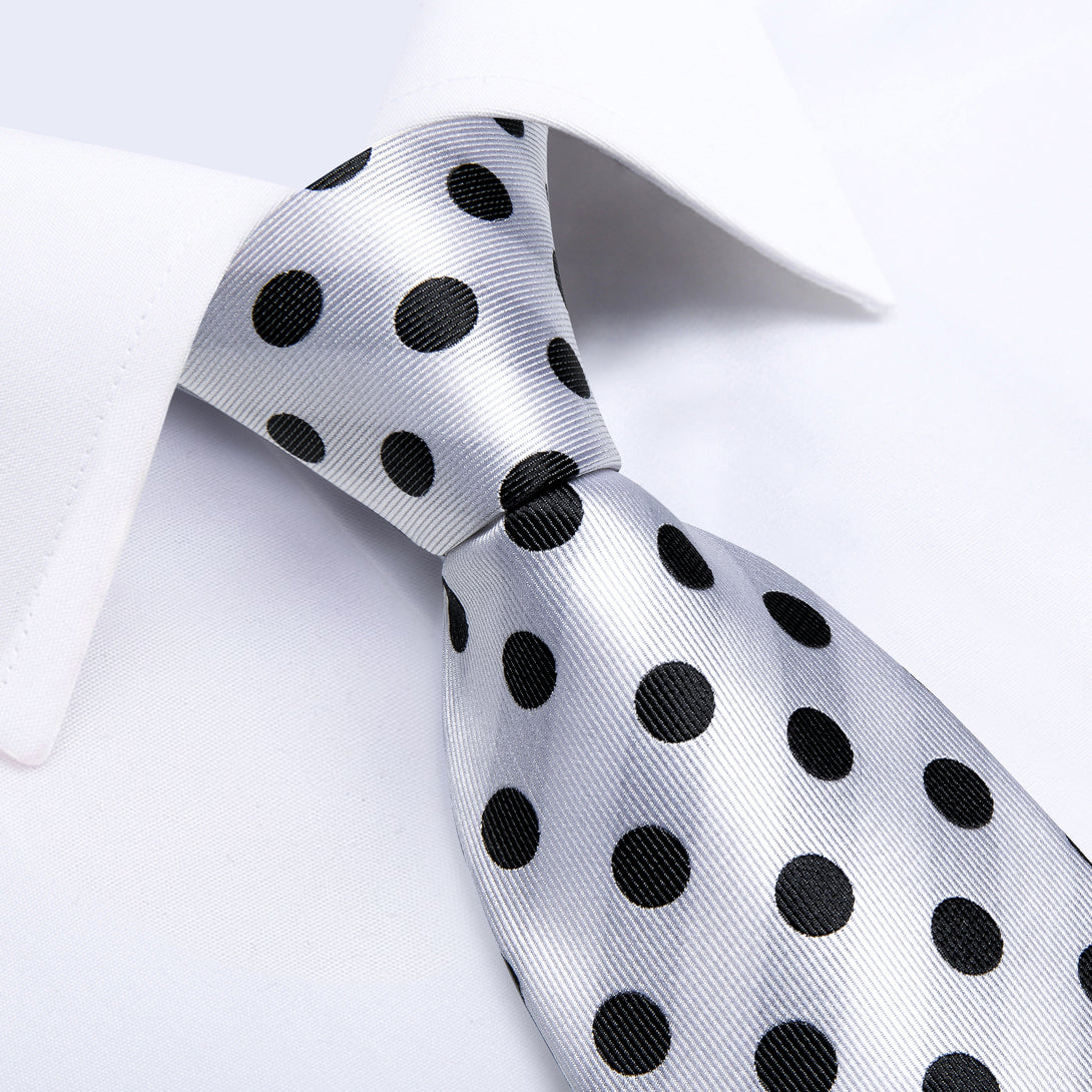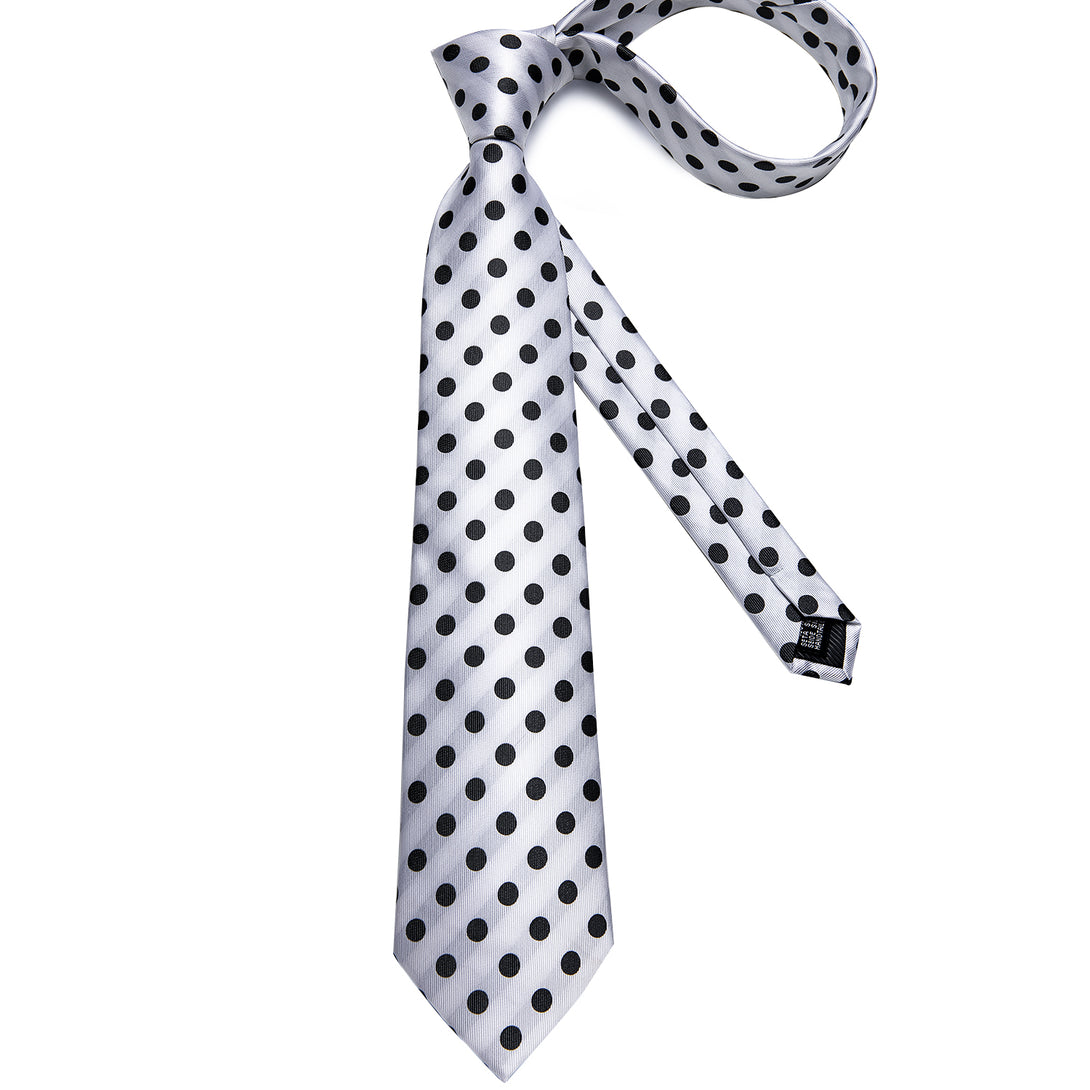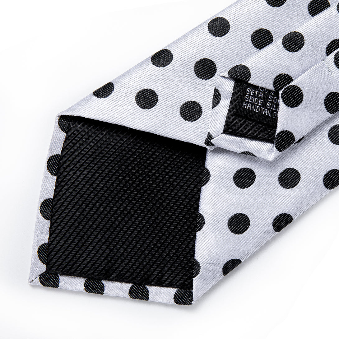 Ties2you Mens White Tie Set Silk Polka Dot Woven Necktie Pocket Square Cufflinks Set