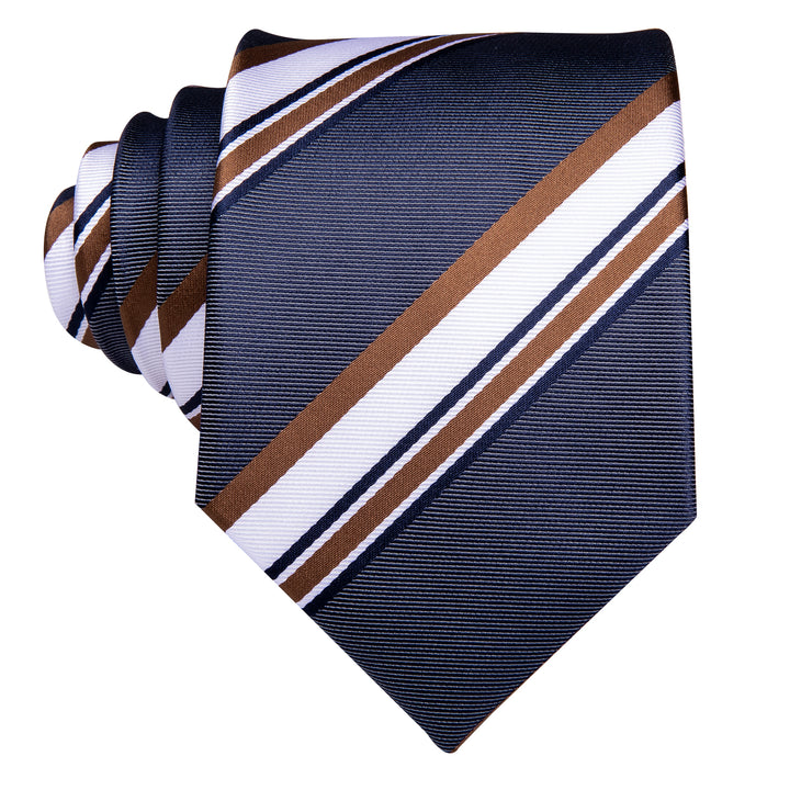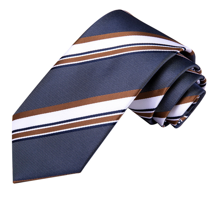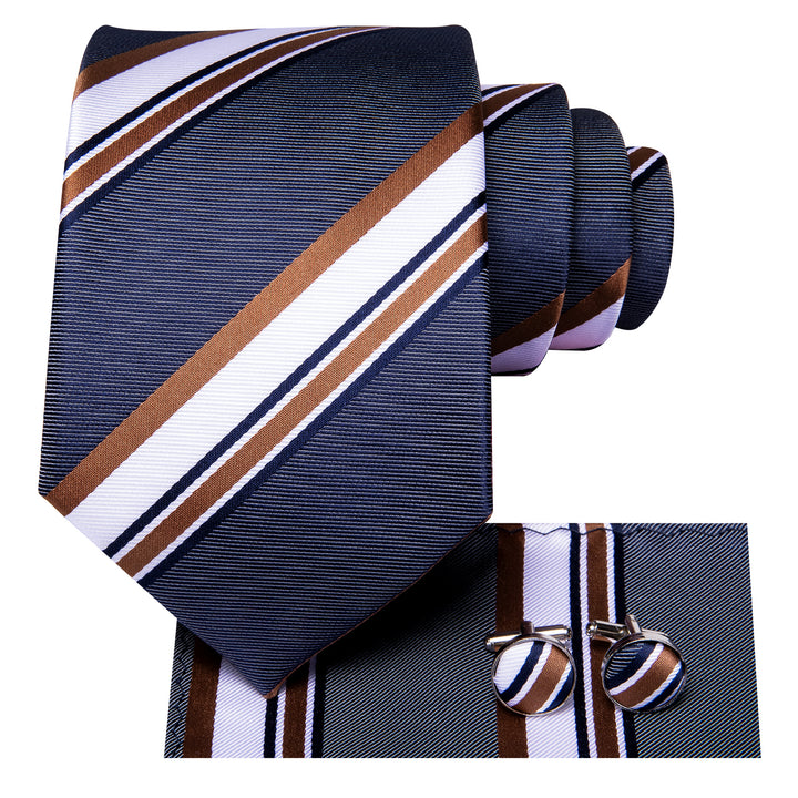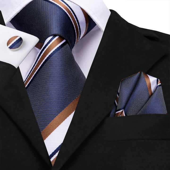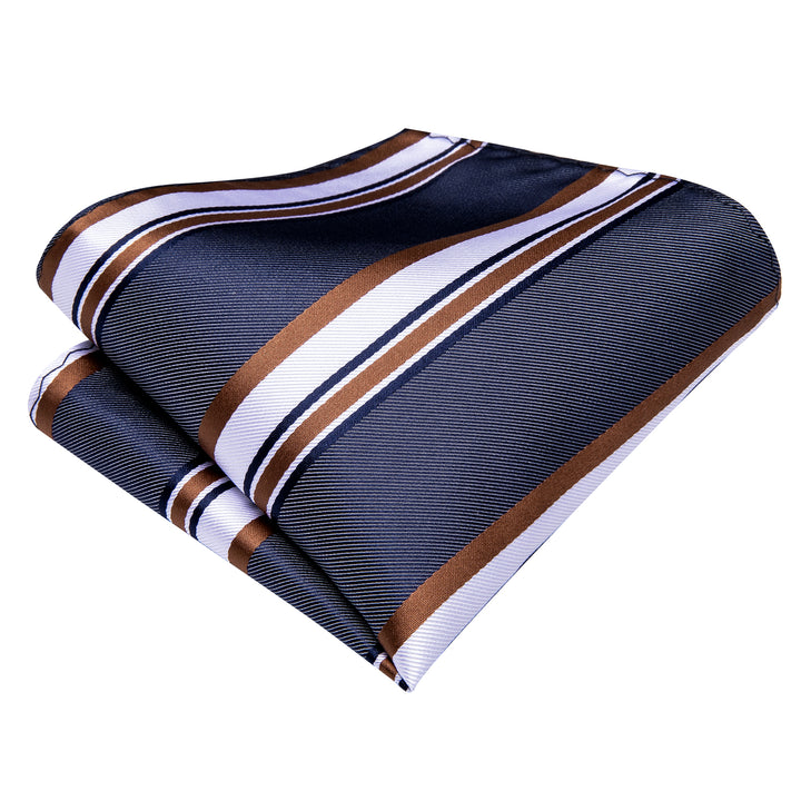 Blue Brown Striped Necktie Pocket Square Cufflinks Set