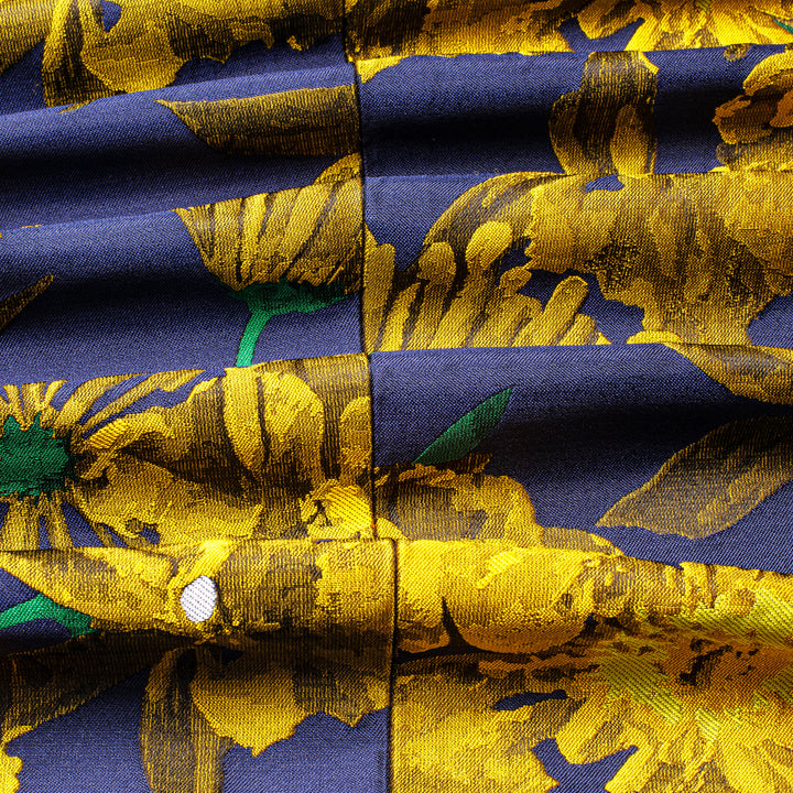Golden Blue Plaid Silk Ascot Cravat knit ties for sale with floral tie Lapel Pin