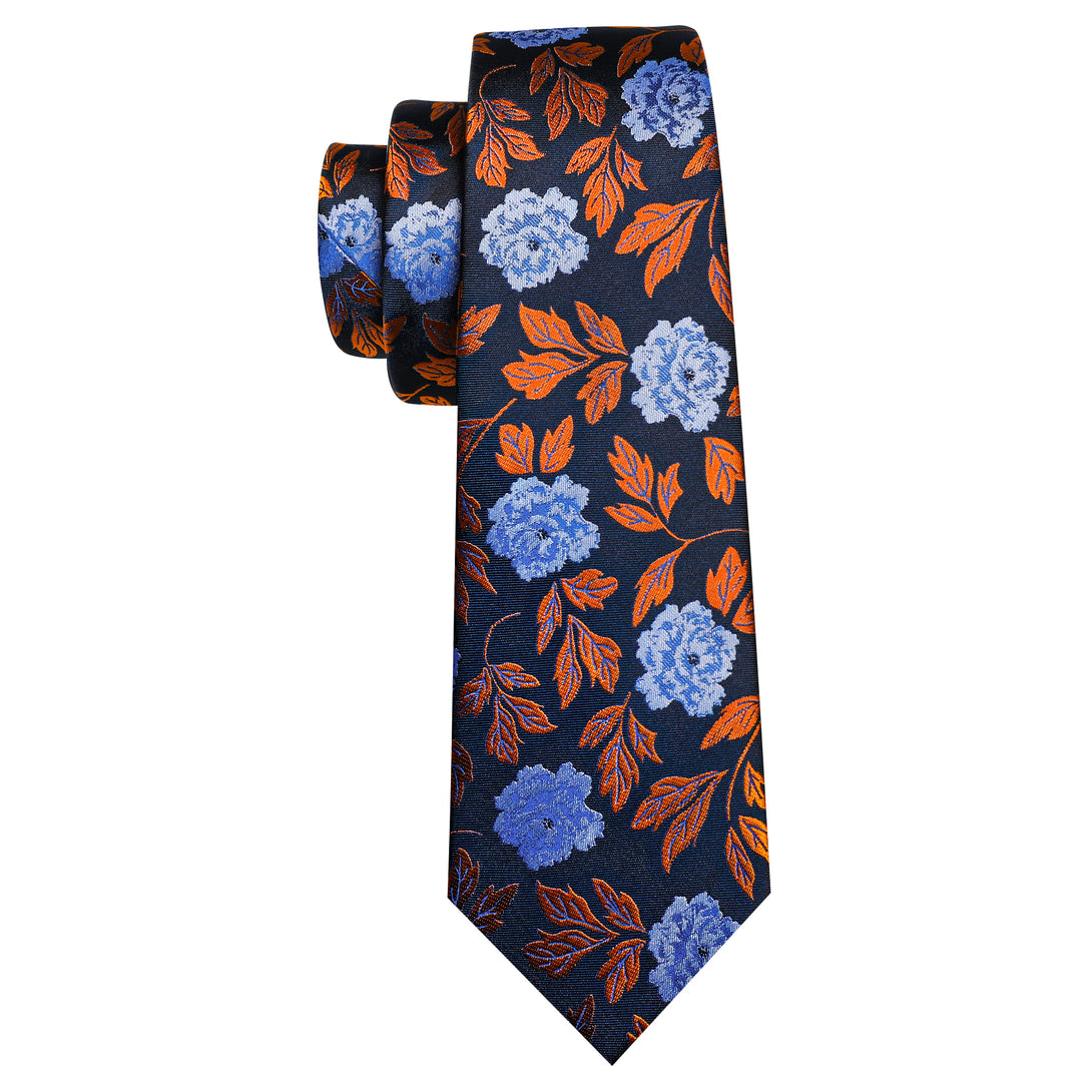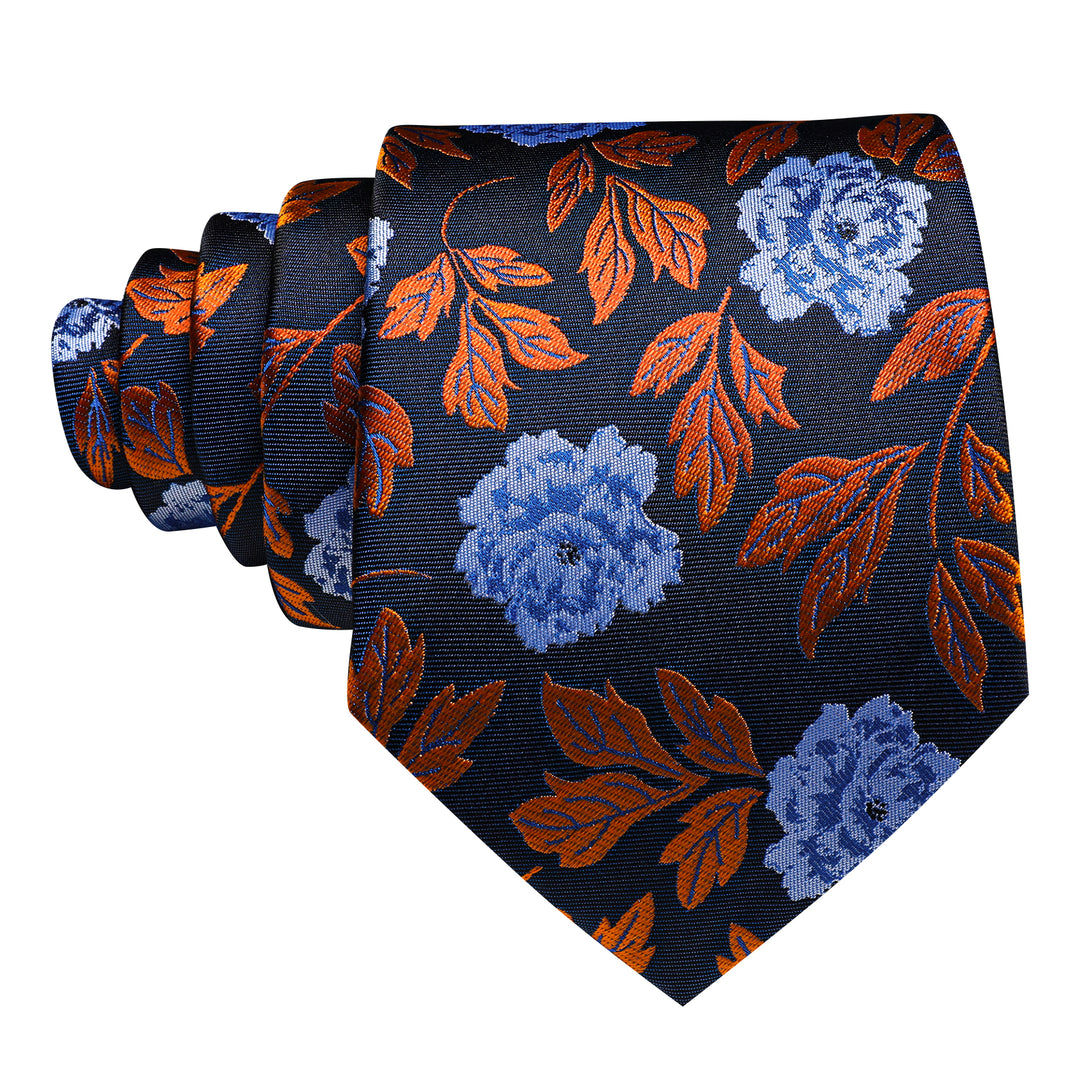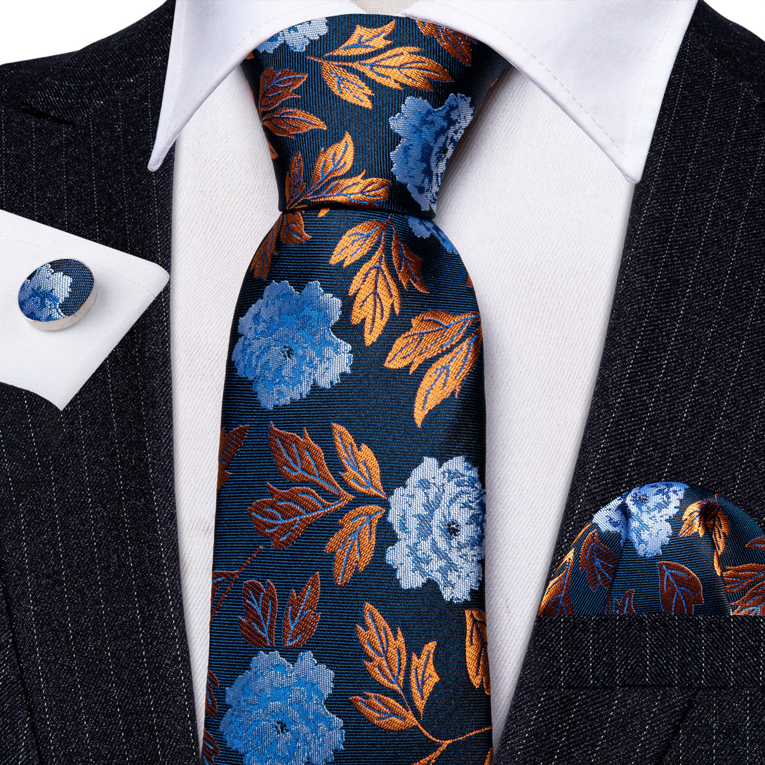 Blue Golden Leaves Paisley Silk Tie Pocket Square Cufflinks Set