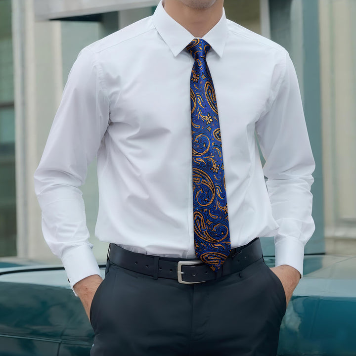 Ties2you Mens Blue Tie Silk Paisley Necktie Pocket Square Cufflinks Set