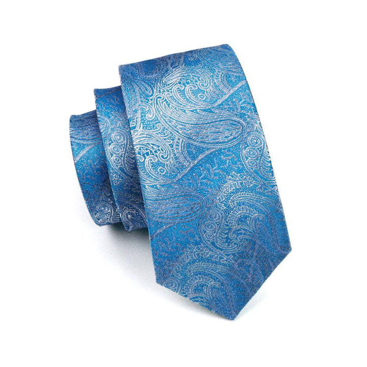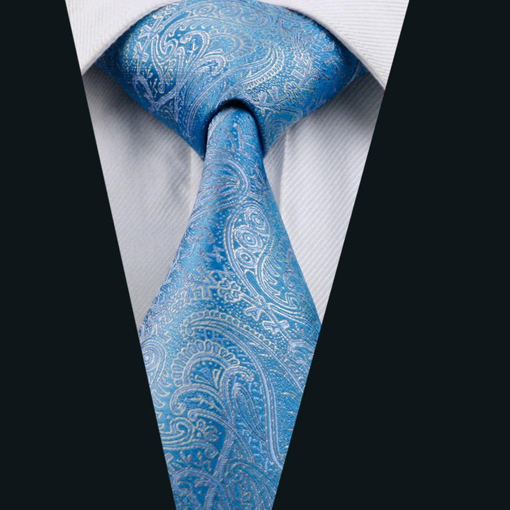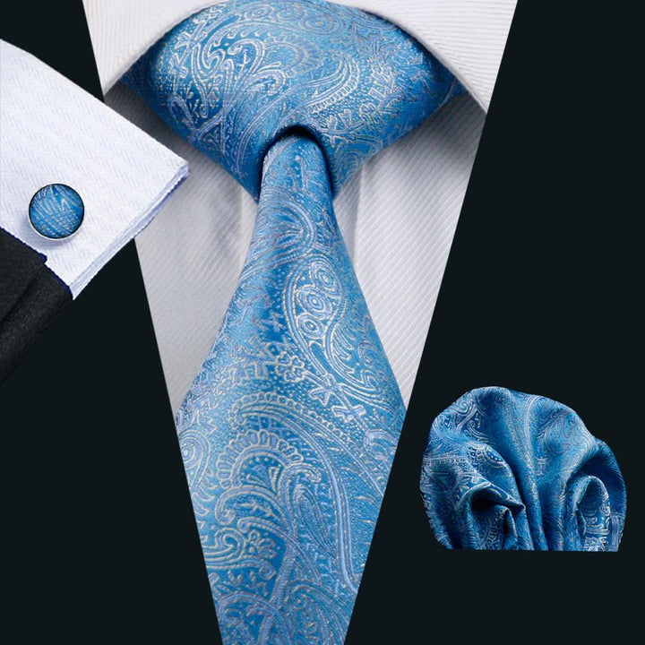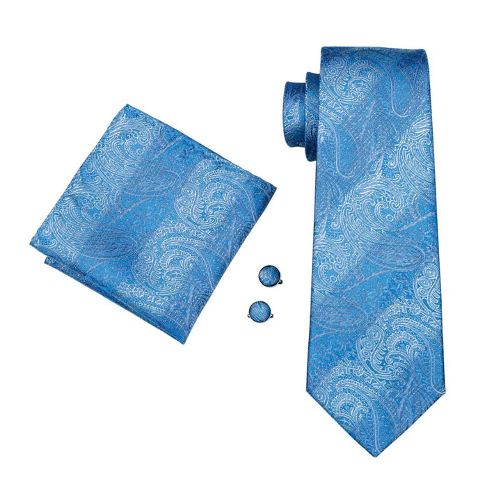 Blue Paisley Silk Men's Tie Pocket Square Cufflinks Set