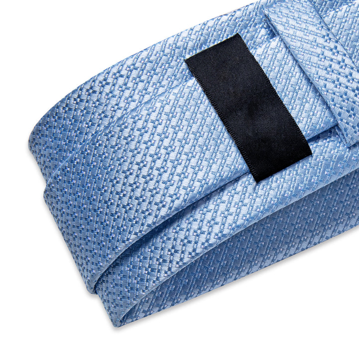 Blue Plaid Silk Men's Necktie Pocket Square Cufflinks Set with Clip