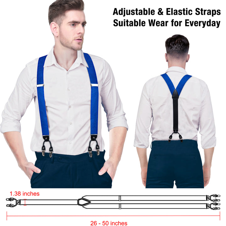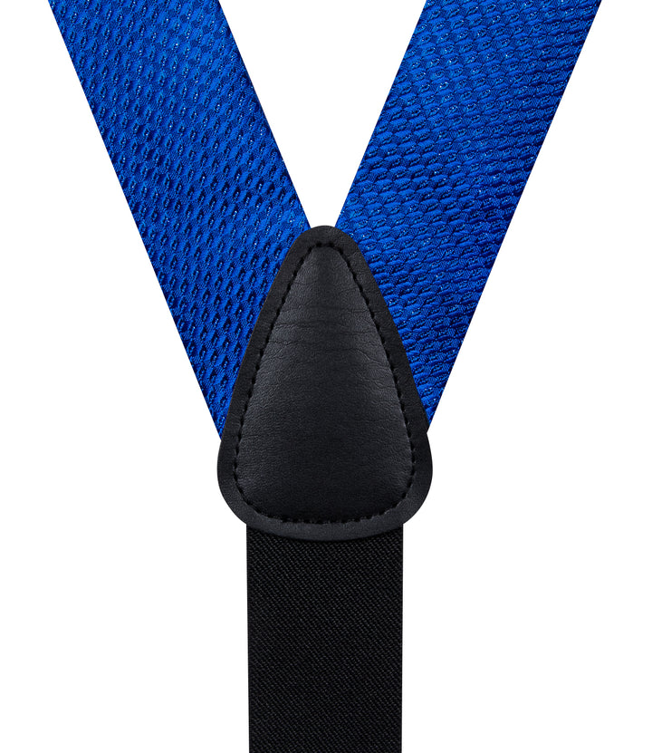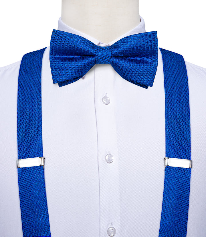 Blue Plaid Y Back Brace Clip-on Men's Suspender with Bow Tie Set