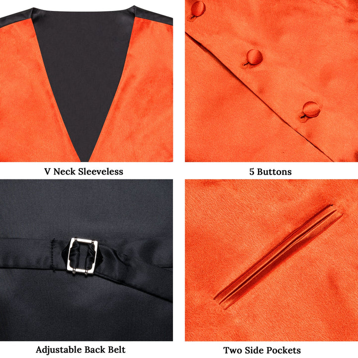 Brilliant Orange Solid Shining Silk Men Vest Necktie Bow Tie Handkerchief Cufflinks Set