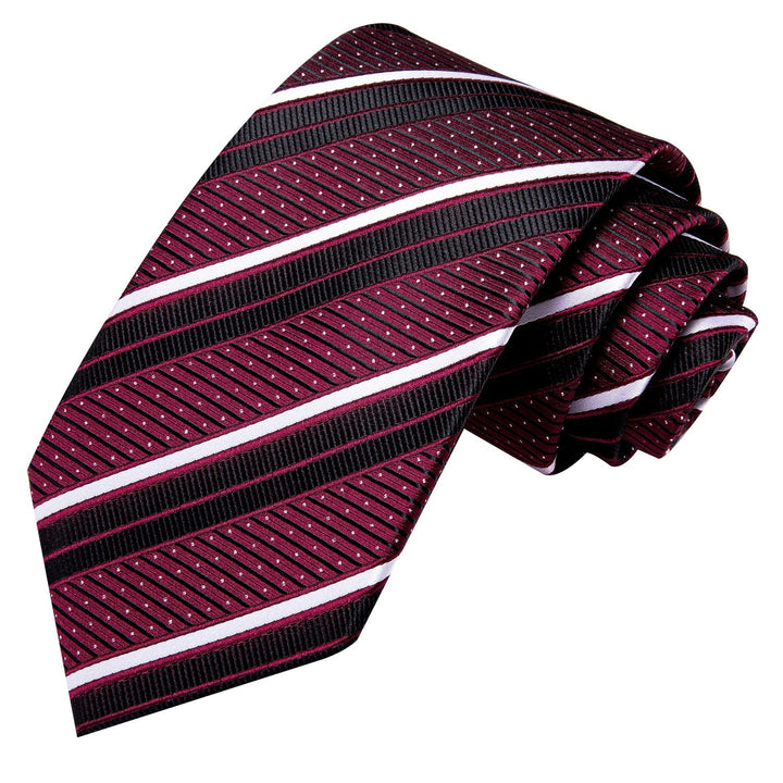 Burgundy Red Black White Striped Men's 63 Inches Extra Length Tie