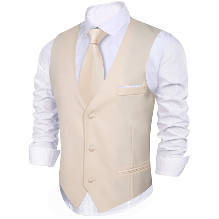 Champagne White Solid Silk Men's V-Neck Business Vest