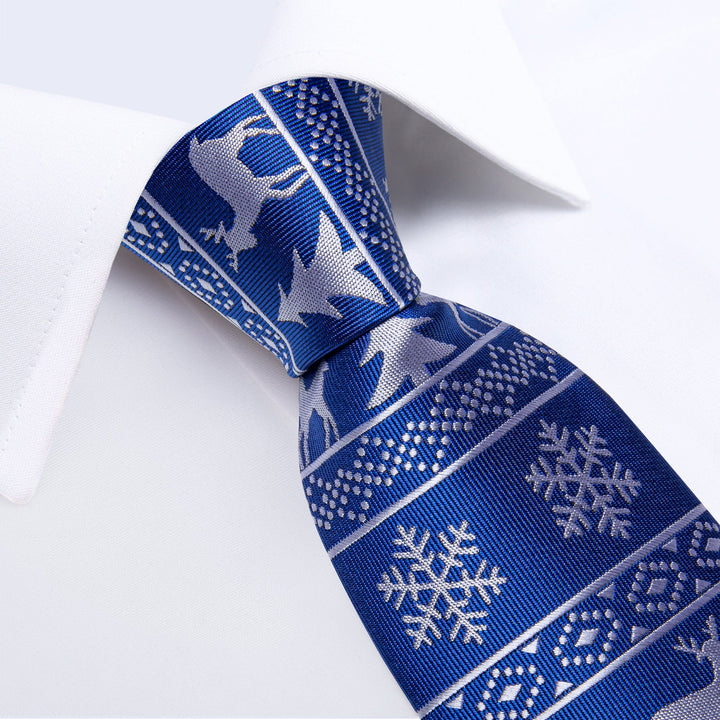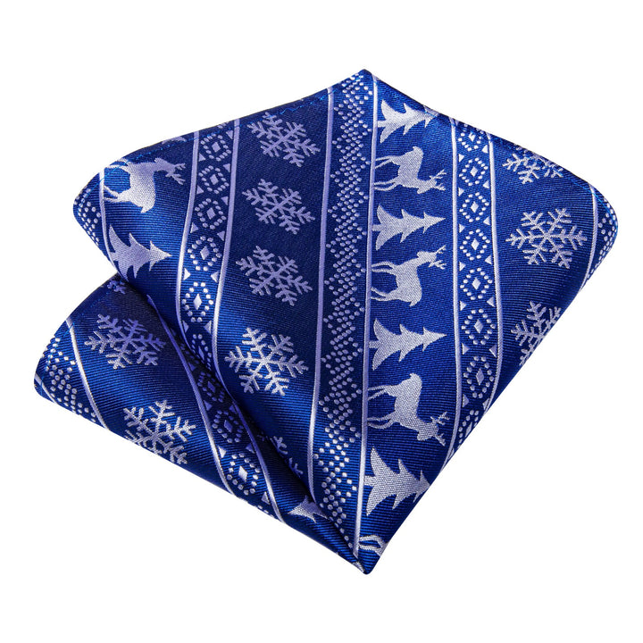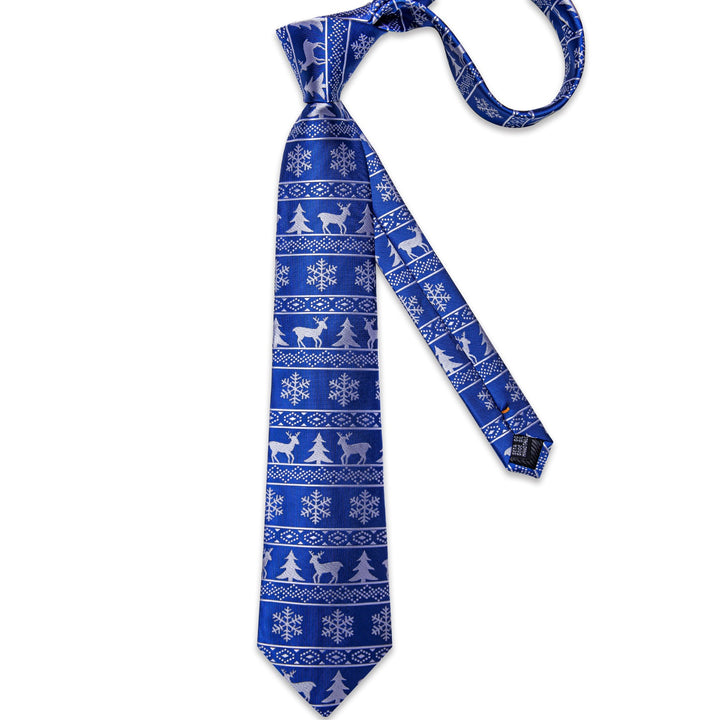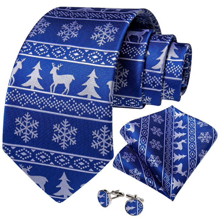 Christmas Blue White Deer Novelty Silk Men's Necktie Pocket Square Cufflinks Set