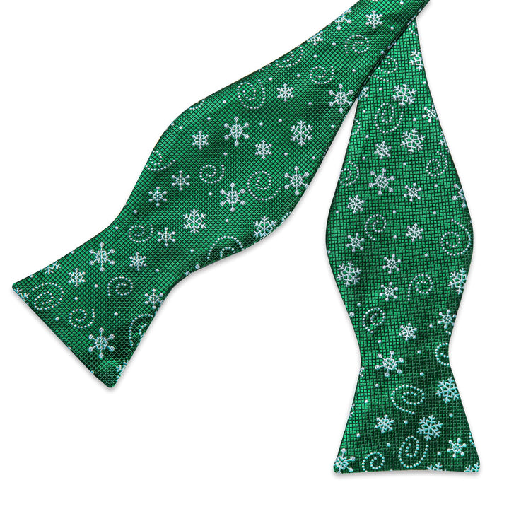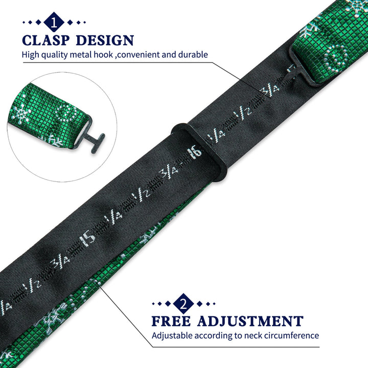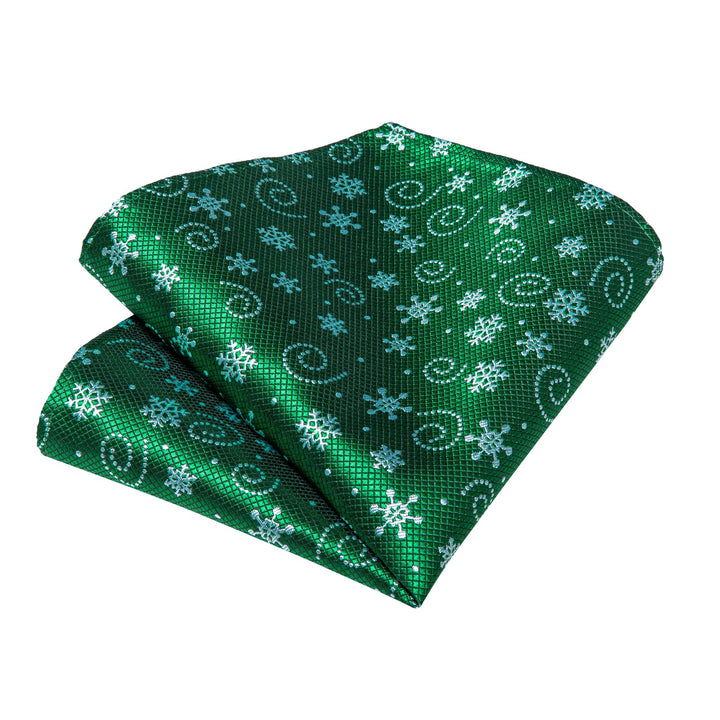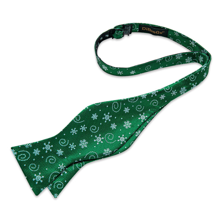 Christmas Green White Snowflake Self-tied Bow Tie Pocket Square Cufflinks Set