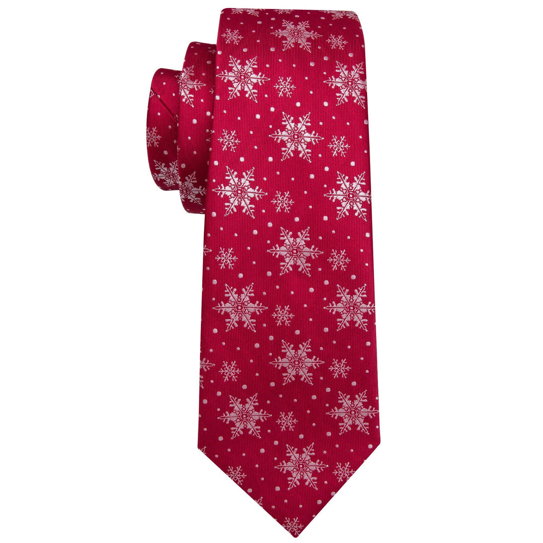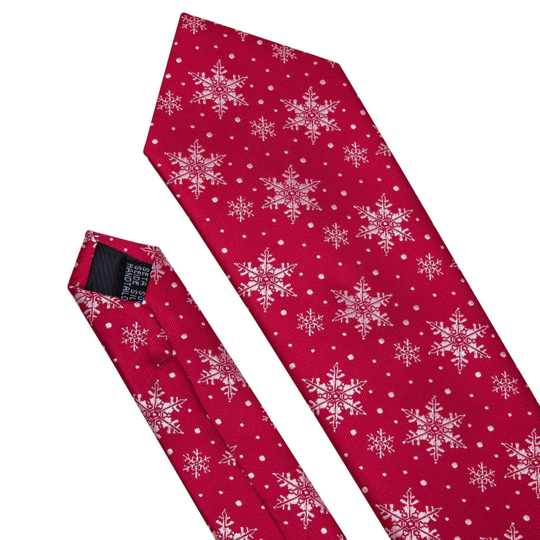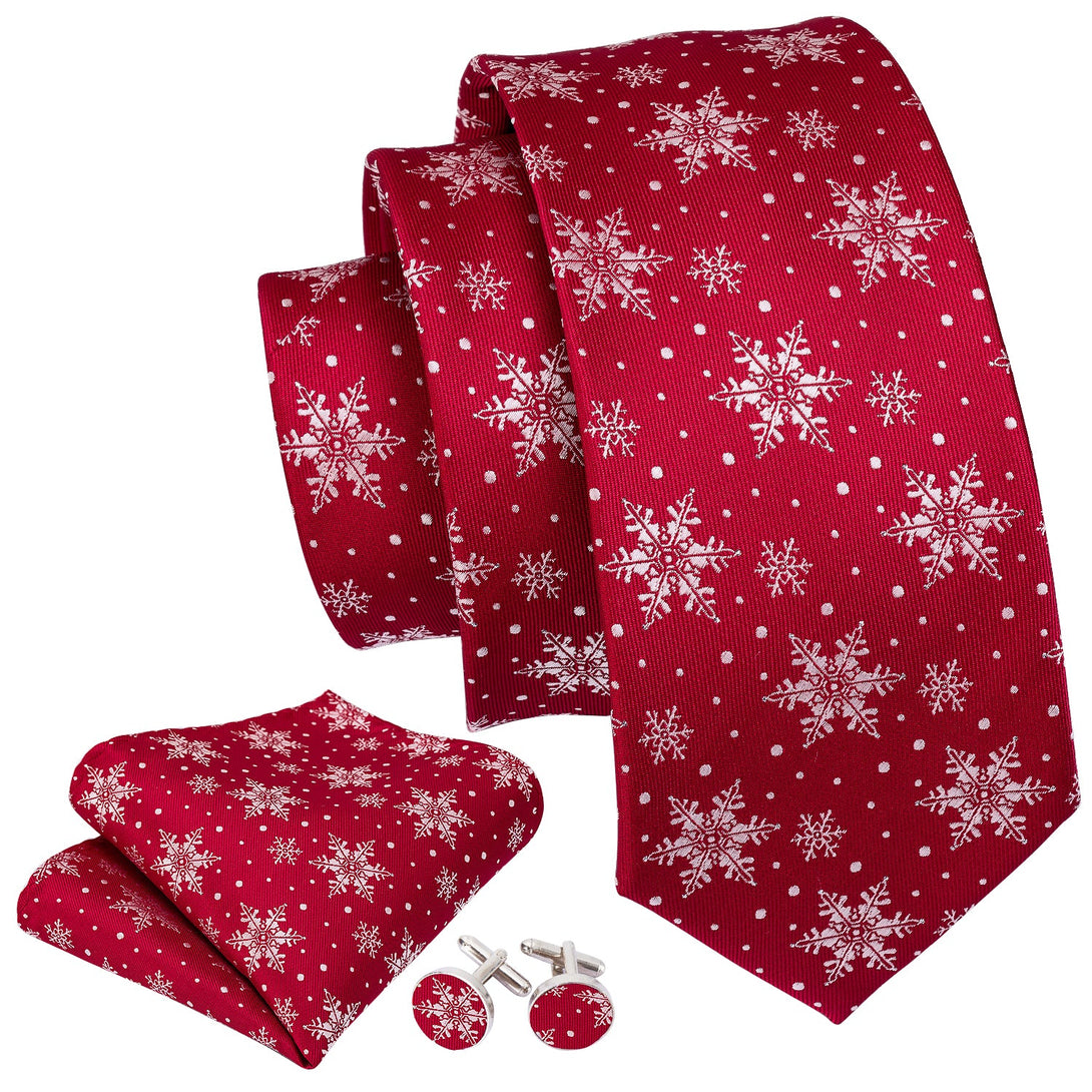 Christmas Red White Snowflake Silk Men's Necktie Pocket Square Cufflinks Set