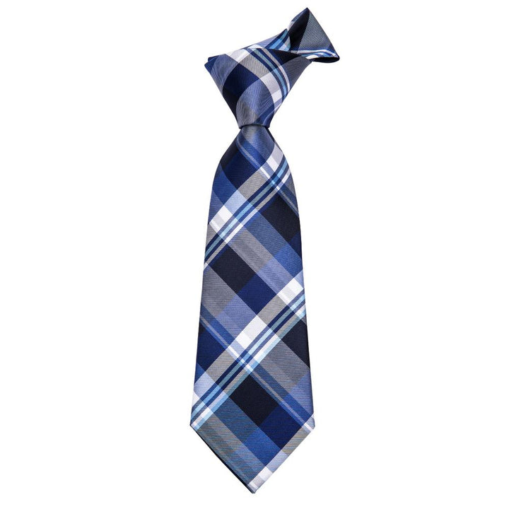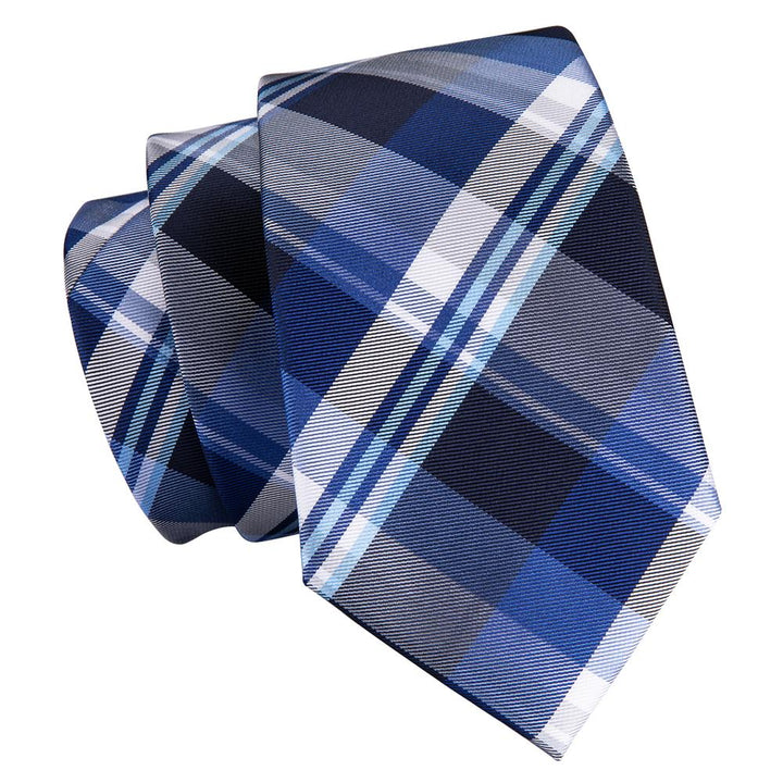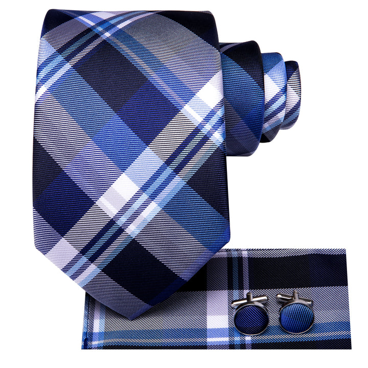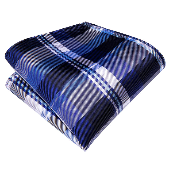 Classic Blue Plaid Men's Tie Set Tie Pocket Square Cufflinks Set