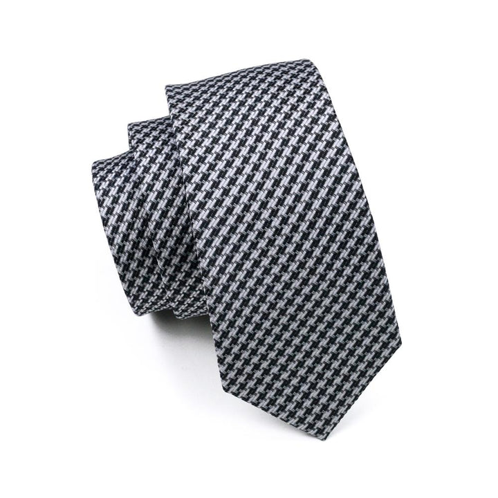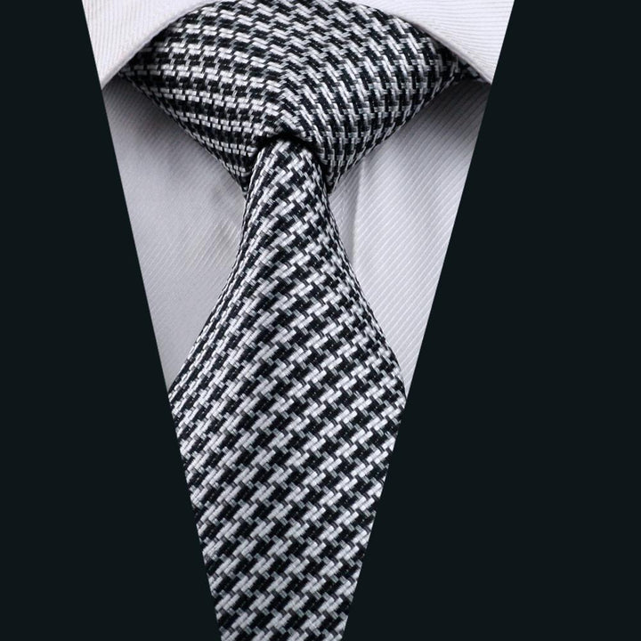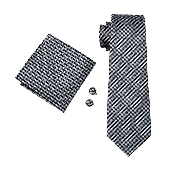 Classic Houndstooth White Black Plaid Tie Pocket Square Cufflinks Set