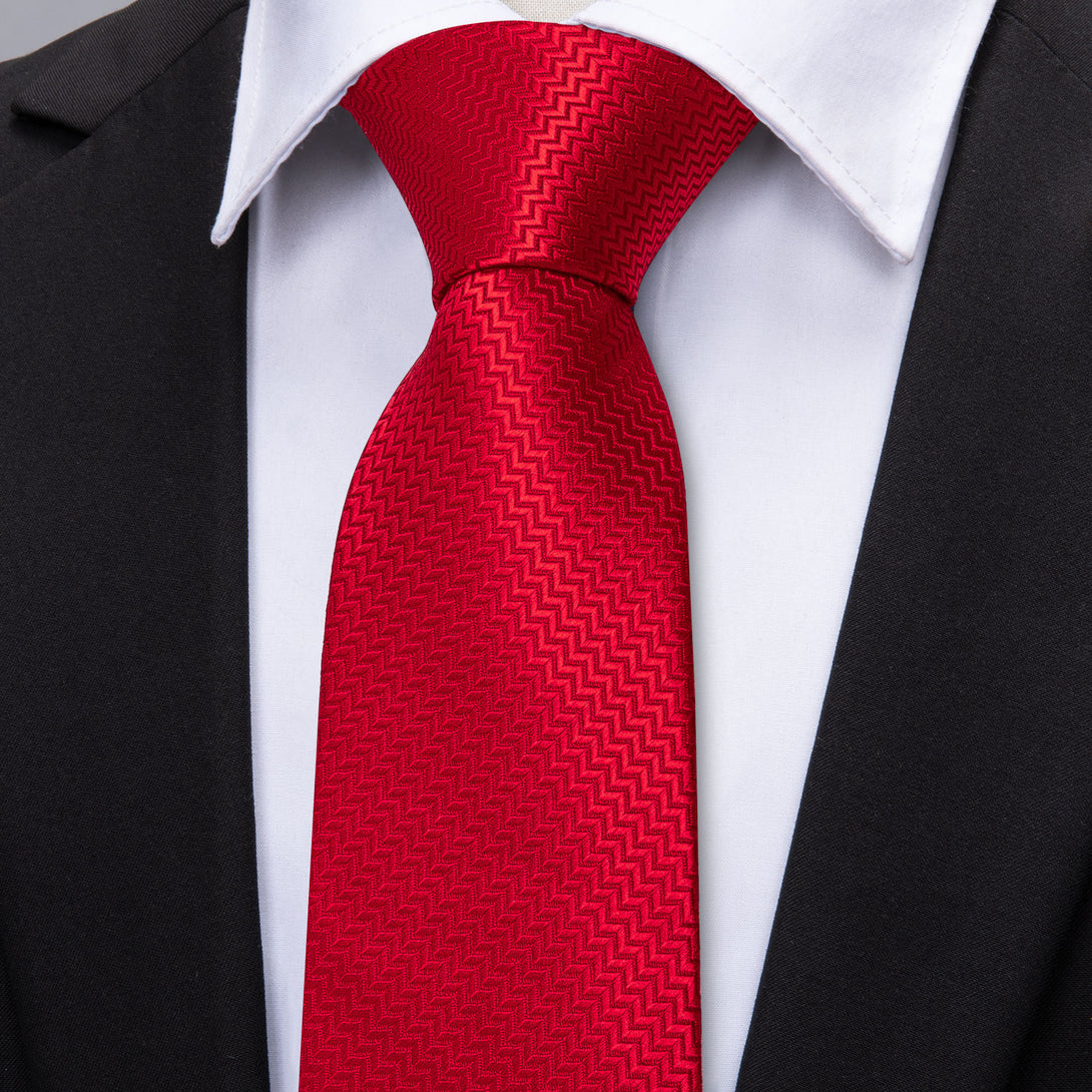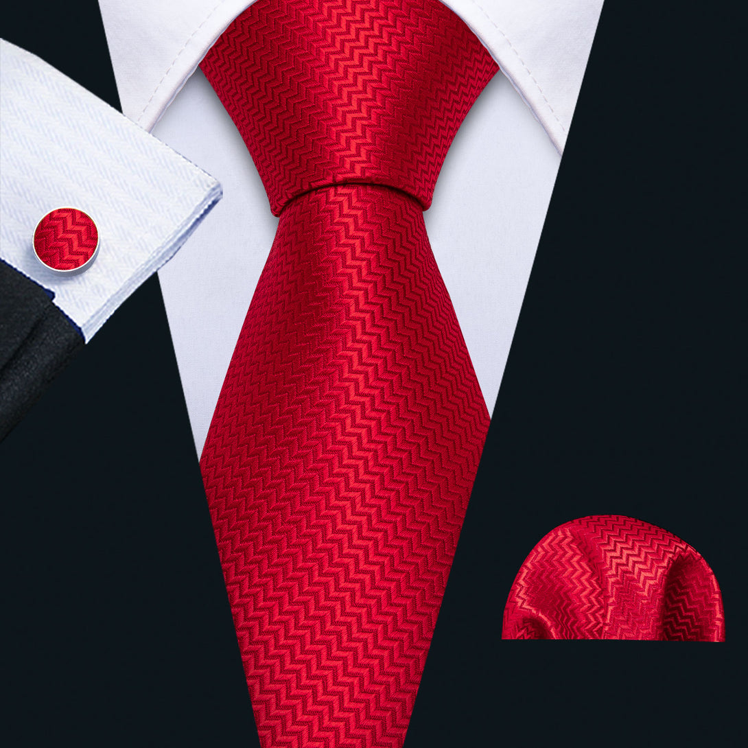 Classic Red Striped Silk Men's Tie Handkerchief Cufflinks Set