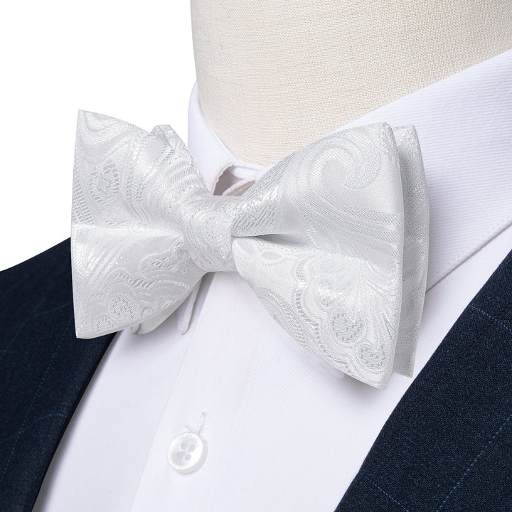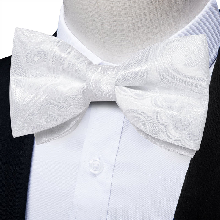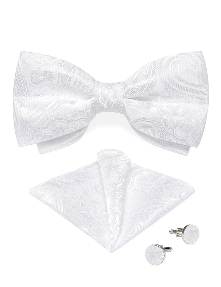 Ties2you Men's Floral White Tuxedo Bowtie Pre-tied Bow Tie Handkerchief Cufflinks Set