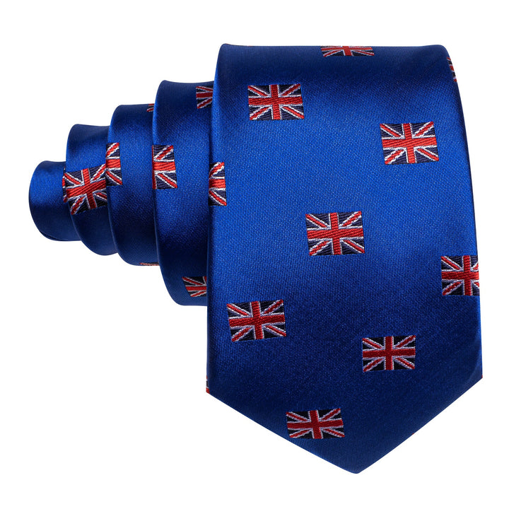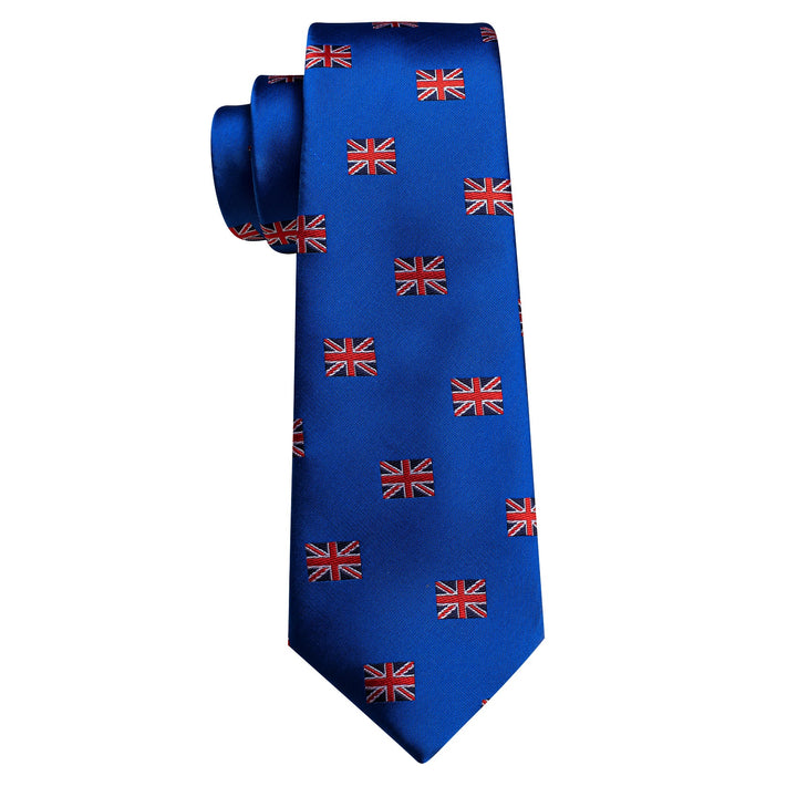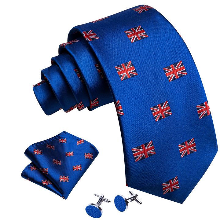 Cobalt Blue England Flag Tie Novelty Men's Necktie Pocket Square Cufflinks Set