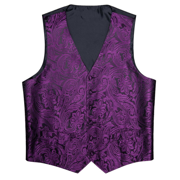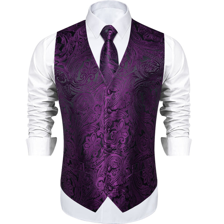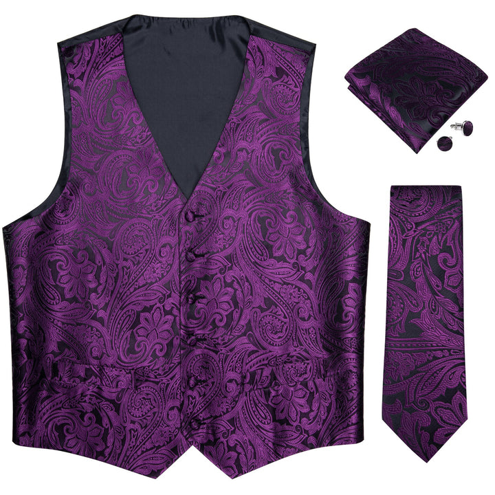 Dark Purple Paisley Men's Vest Tie Hanky Cufflinks Set Waistcoat Suit Set
