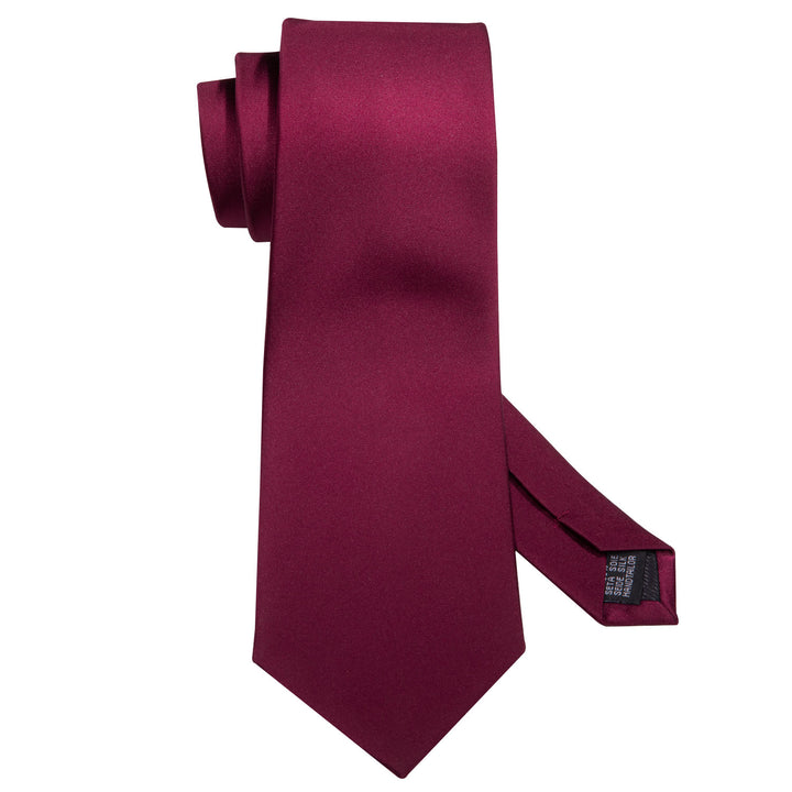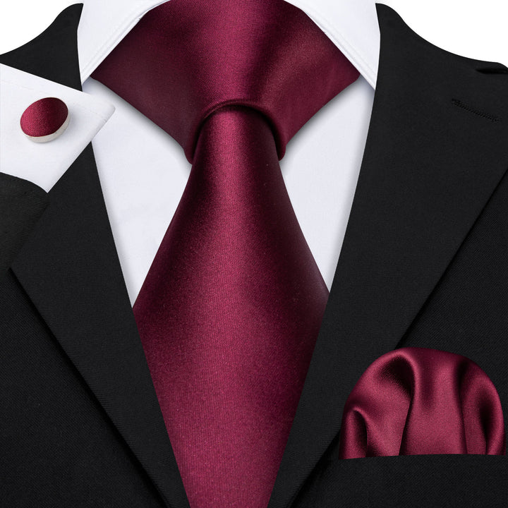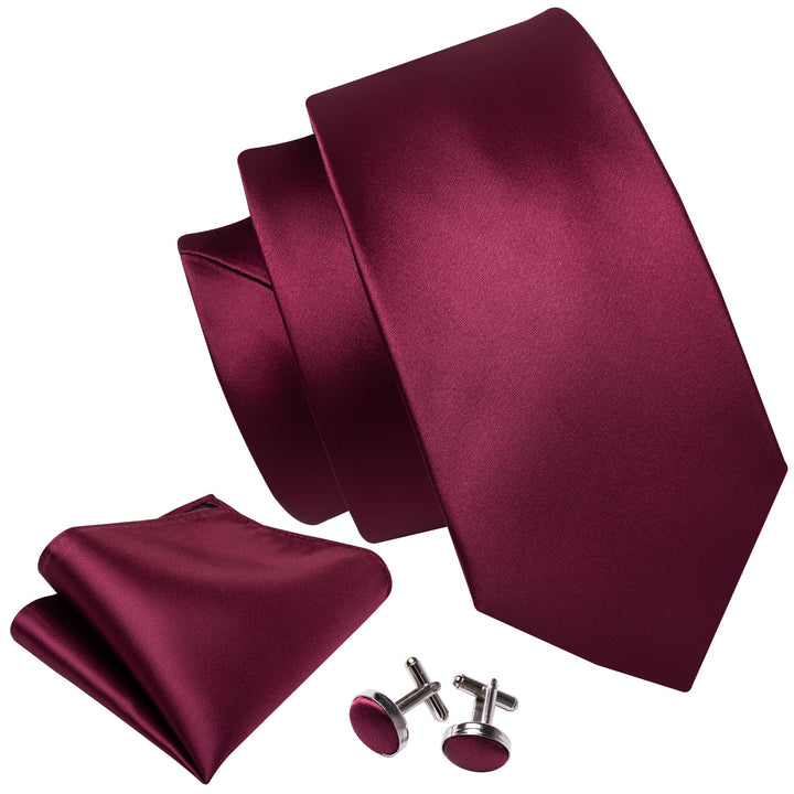Dark Red Solid Necktie Pocket Square Cufflinks Set