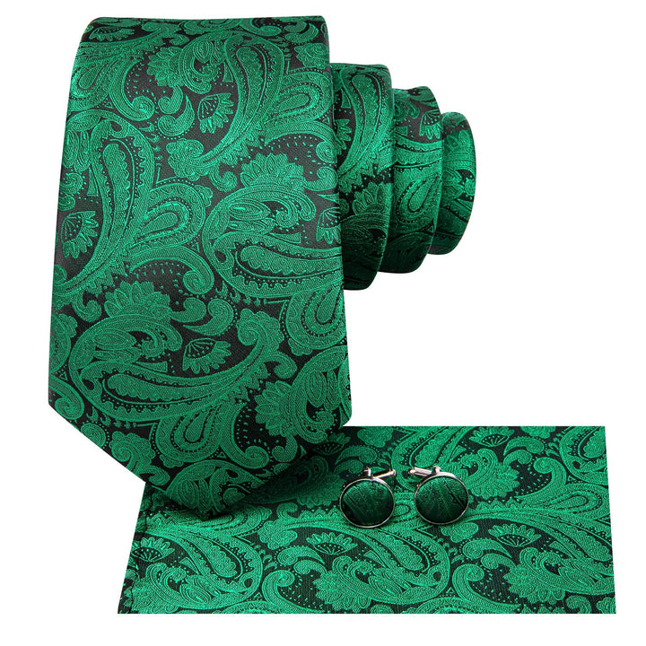 DarkGreen Black Men's 70 Inches Extra Length Tie Handkerchief Cufflinks Set