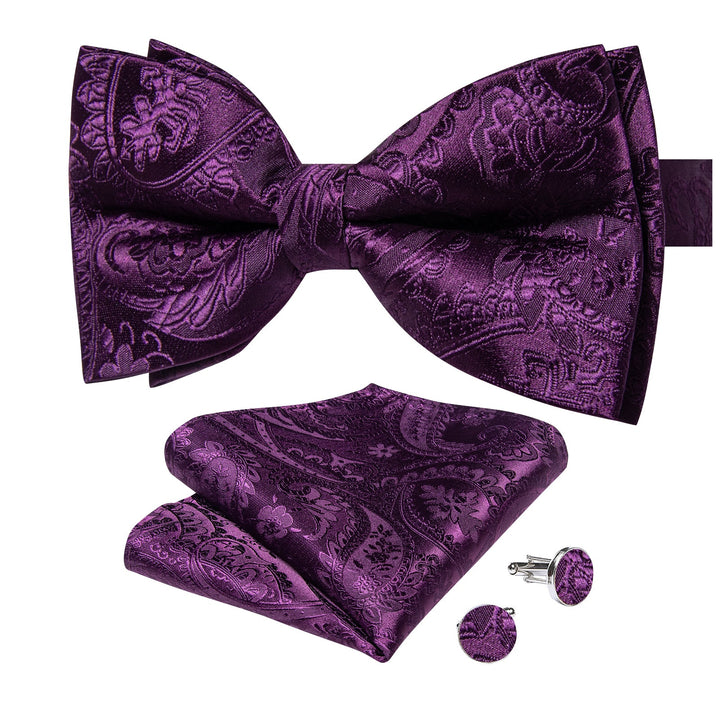 Ties2you Violet Paisley Bowtie Pre-tied Formal Bow Tie Handkerchief Cufflinks Set