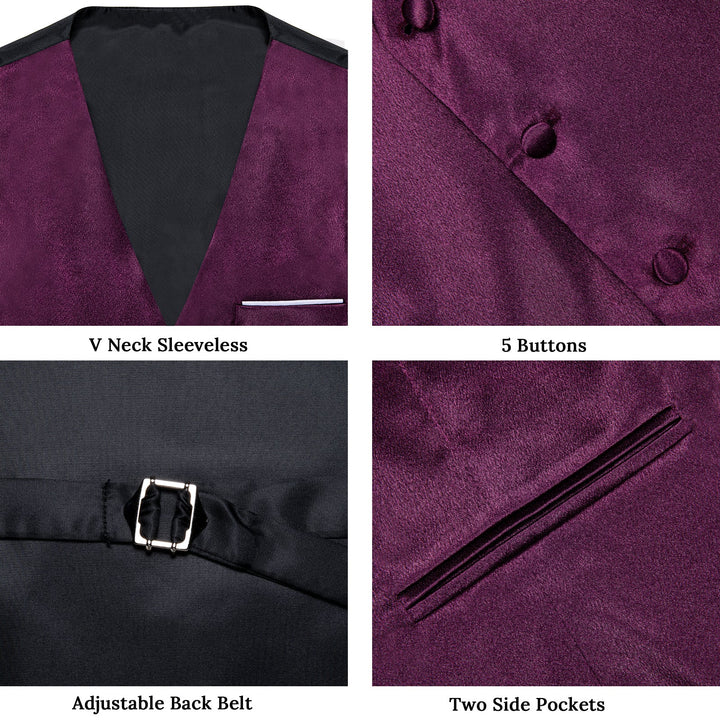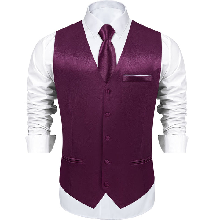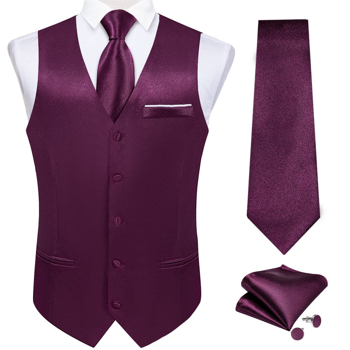 Deep Purple Solid Shining Silk Formal Men's Vest Hanky Cufflinks Tie Set