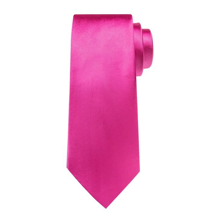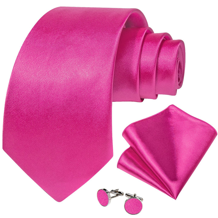 DeepPink Solid Silk Men's Necktie Pocket Square Cufflinks Set