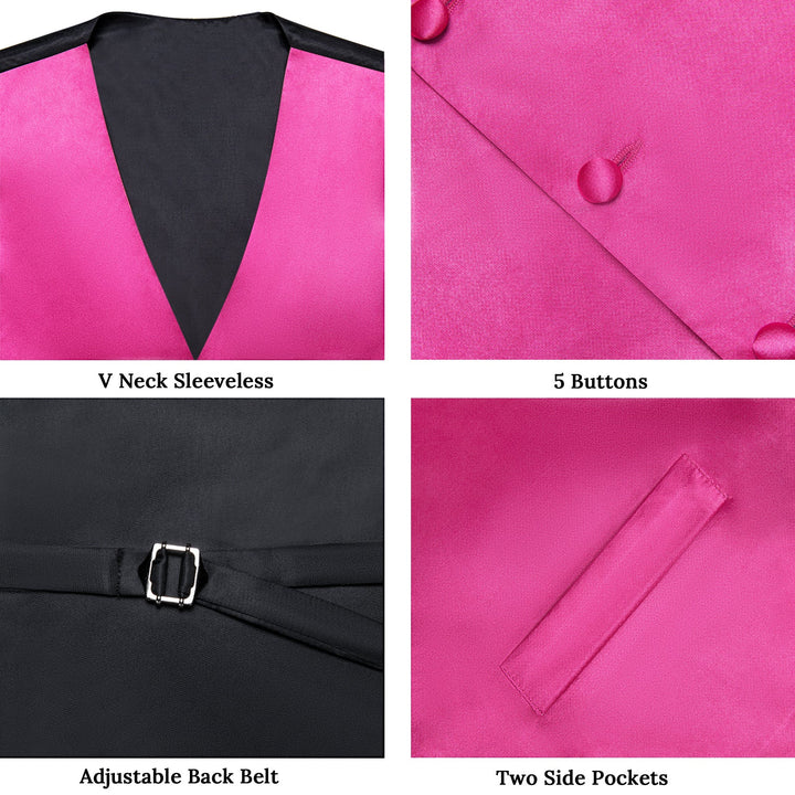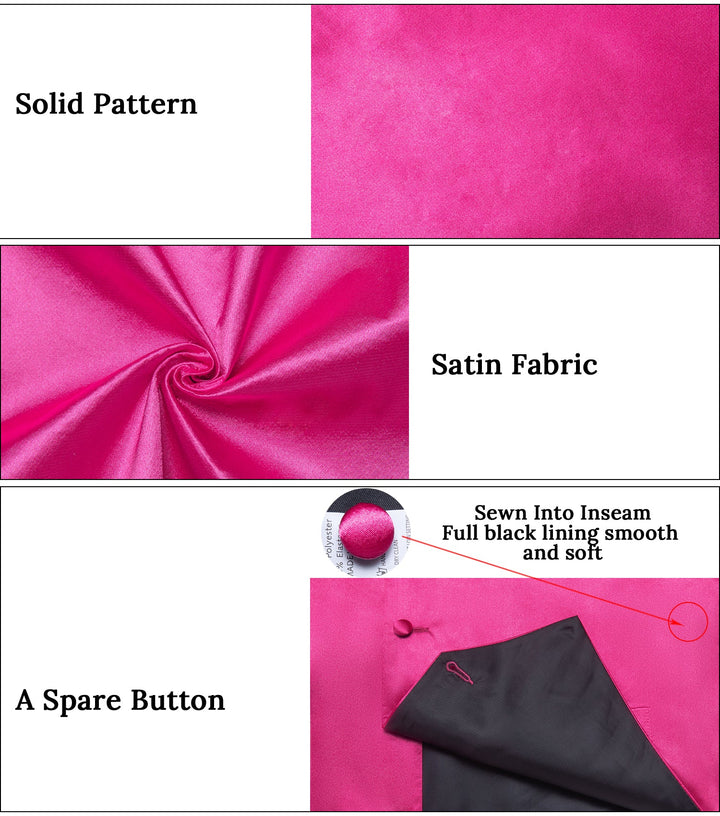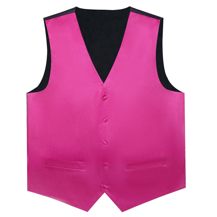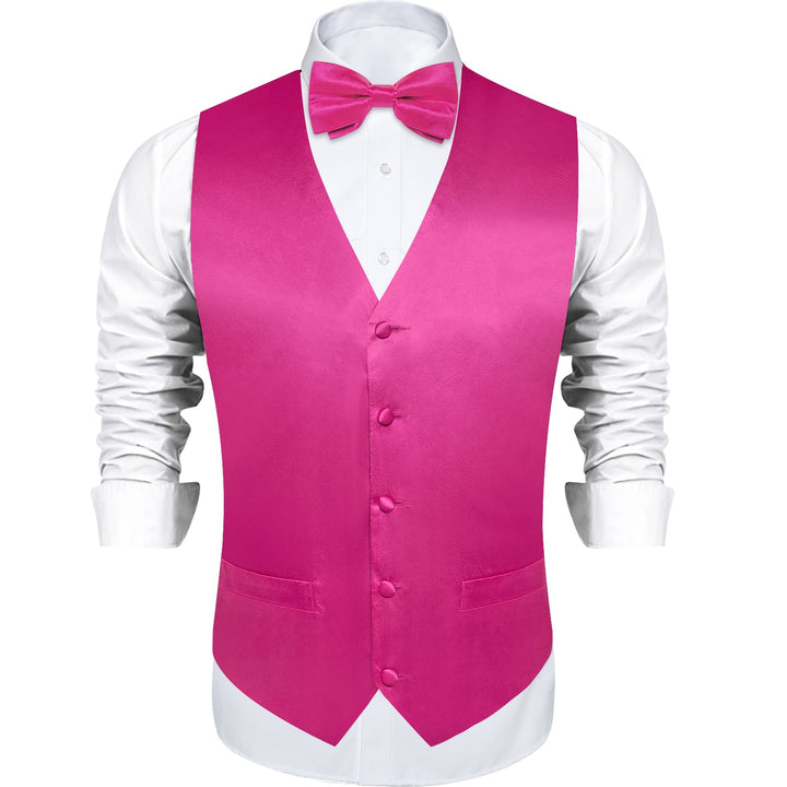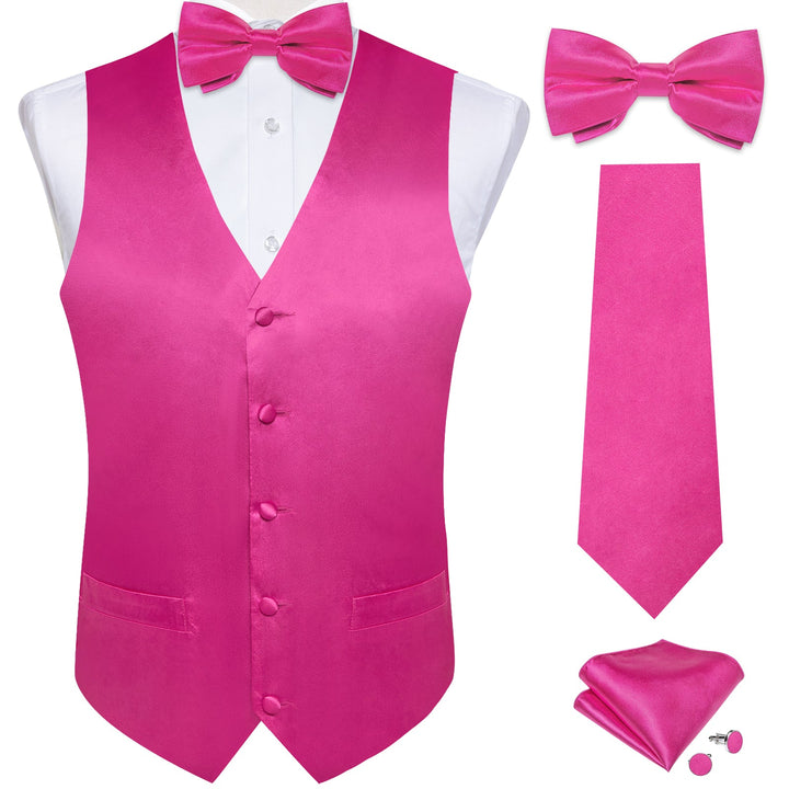 DeepPink Solid Silk Men's Vest Hanky Cufflinks Bow Tie Set