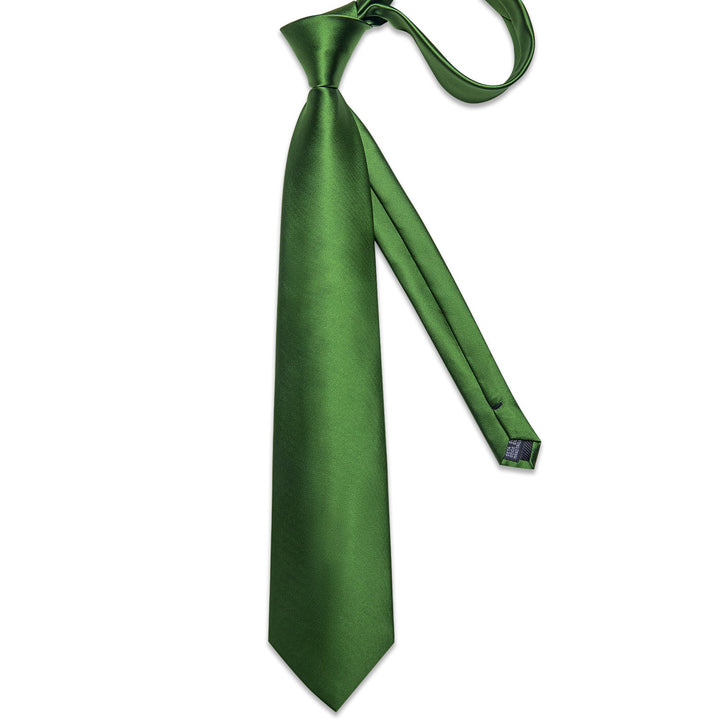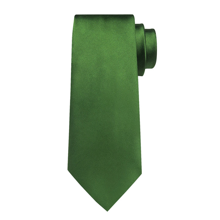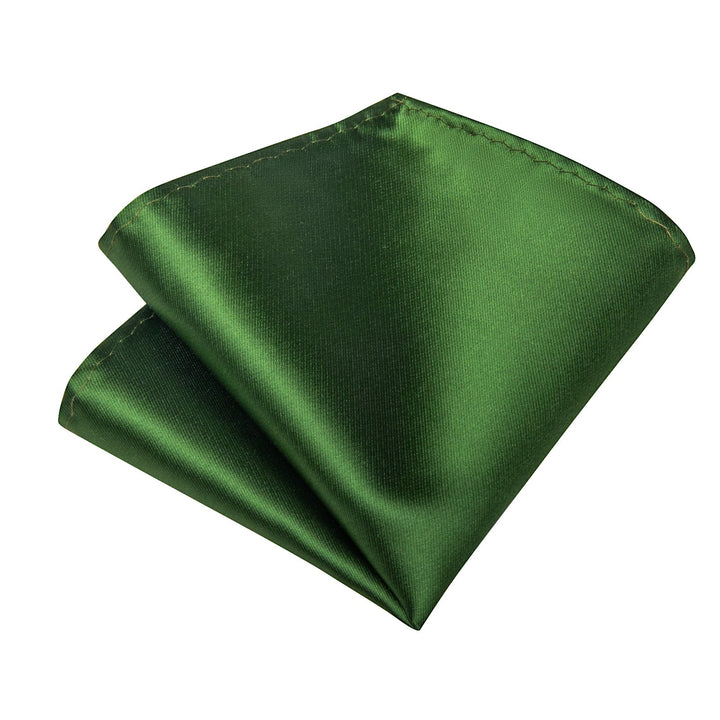 ForestGreen Solid Silk Men's Necktie Pocket Square Cufflinks Set with Clip