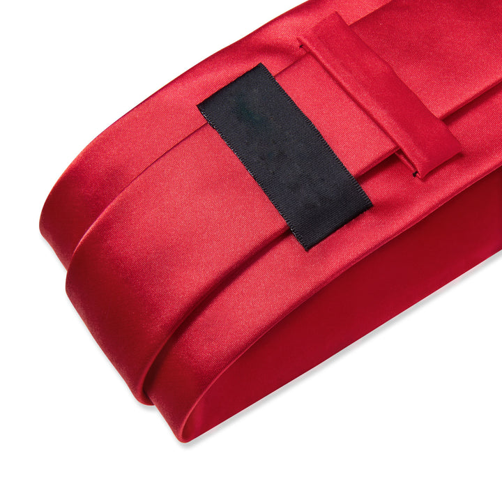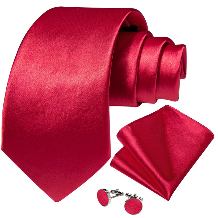 Fresh Red Satin Solid Silk Men's Necktie Pocket Square Cufflinks Set