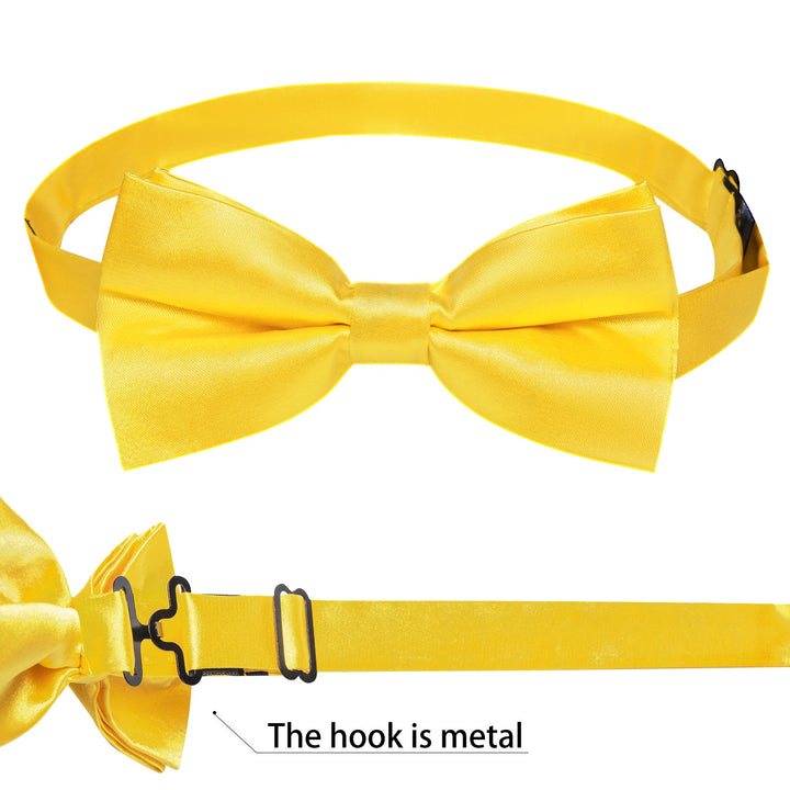 Gold Bow Tie for Men Solid Pre-tied Bow Tie Hanky Cufflinks Set