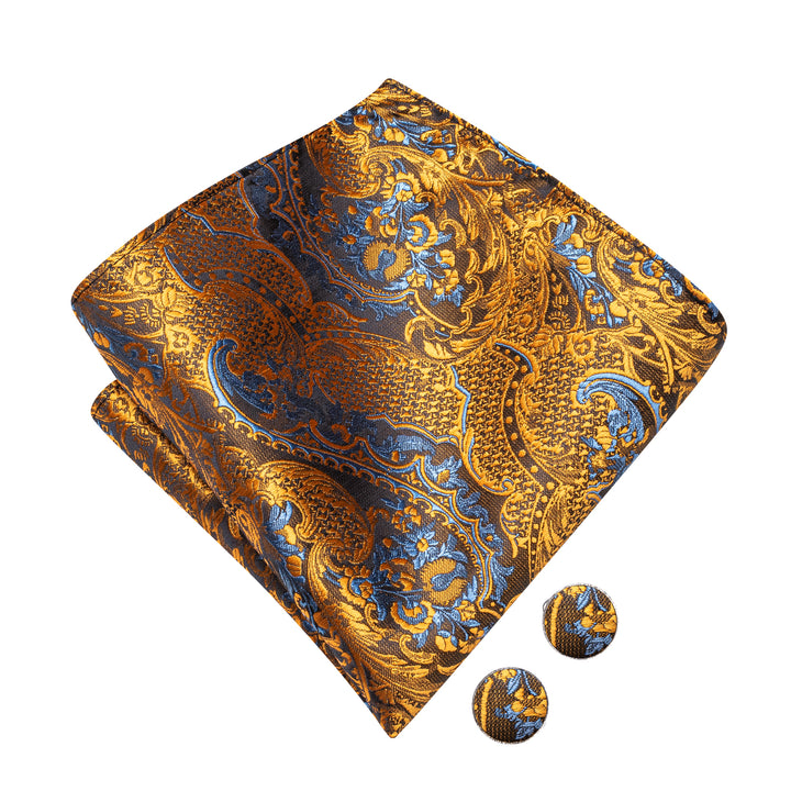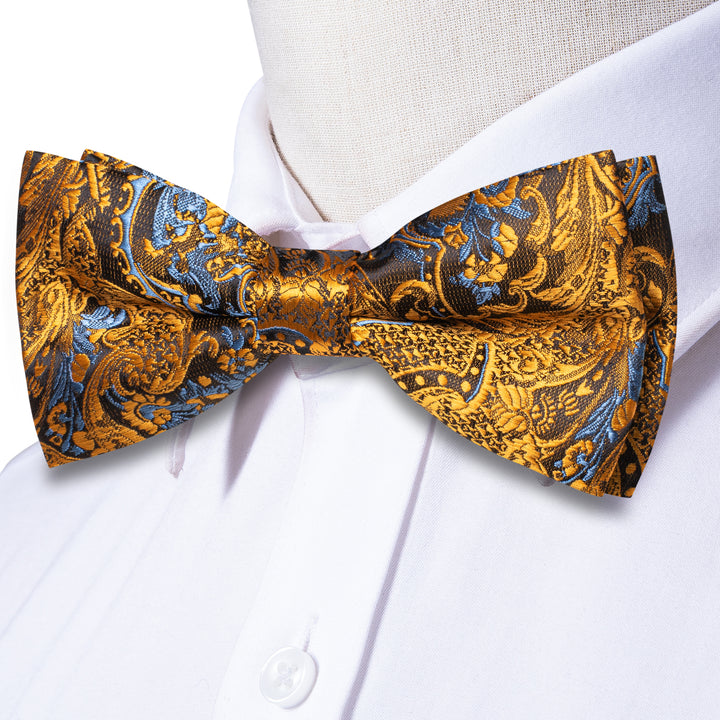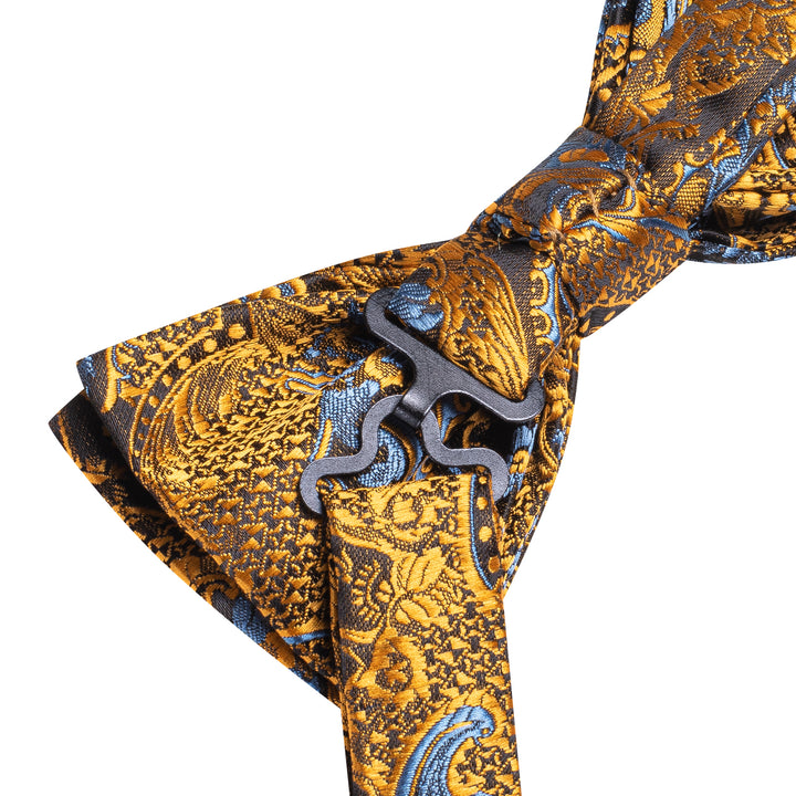 Golden Brown Paisley Men's Pre-tied Bowtie Pocket Square Cufflinks Set