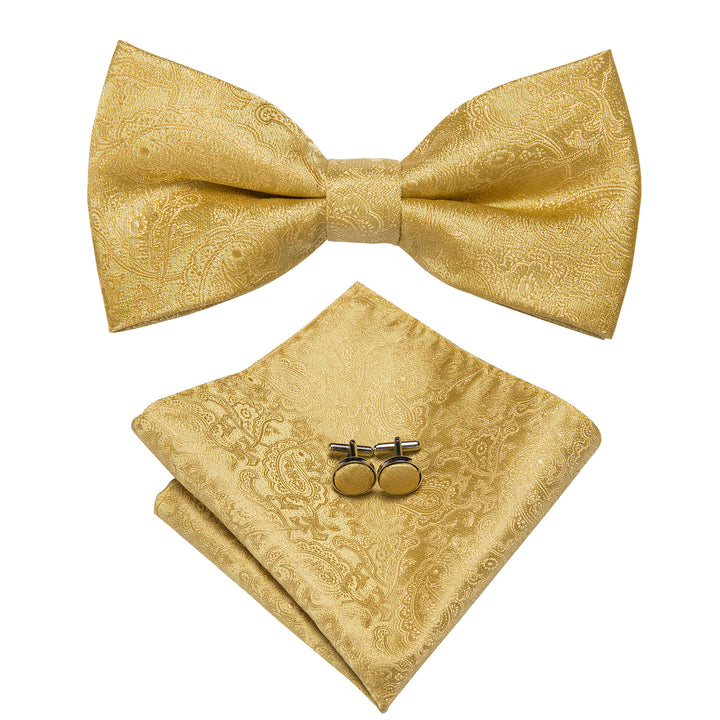 Ties2you Men's Golden Paisley Bowtie Pre-tied Formal Bow Tie Handkerchief Cufflinks Set