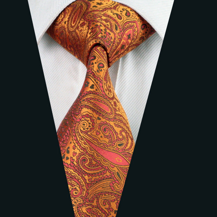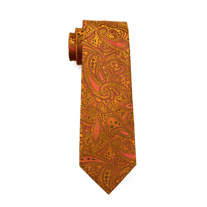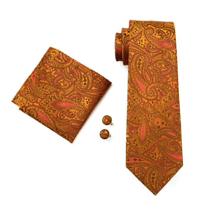 Golden Paisley Silk Men's Tie Pocket Square Cufflinks Set