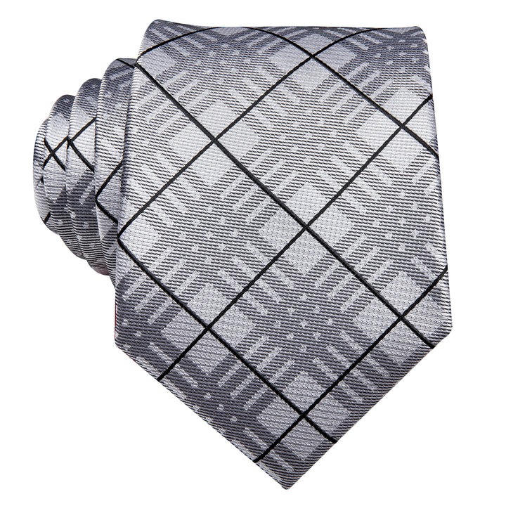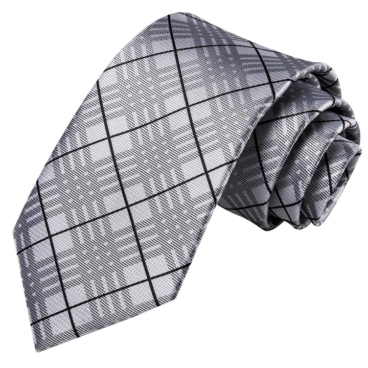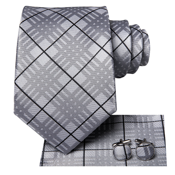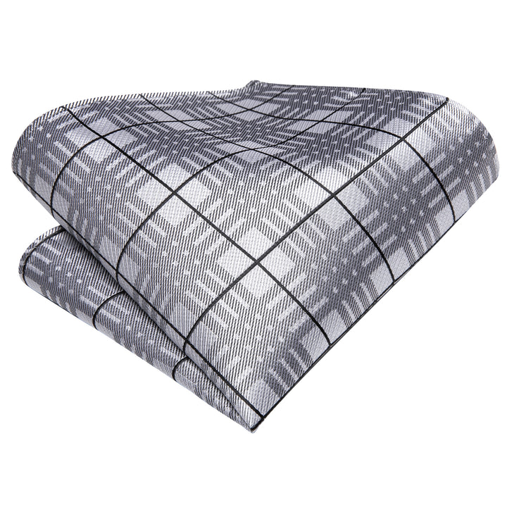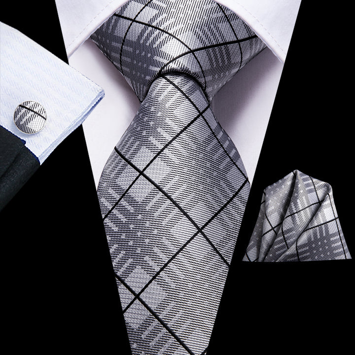 Gray Black Plaid Necktie Pocket Square Cufflinks Set