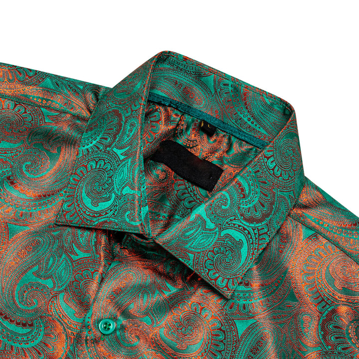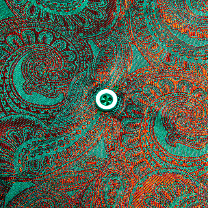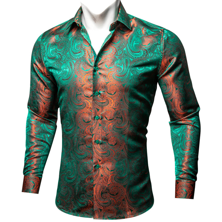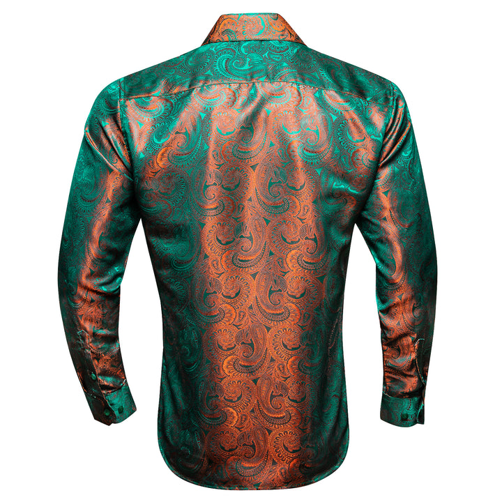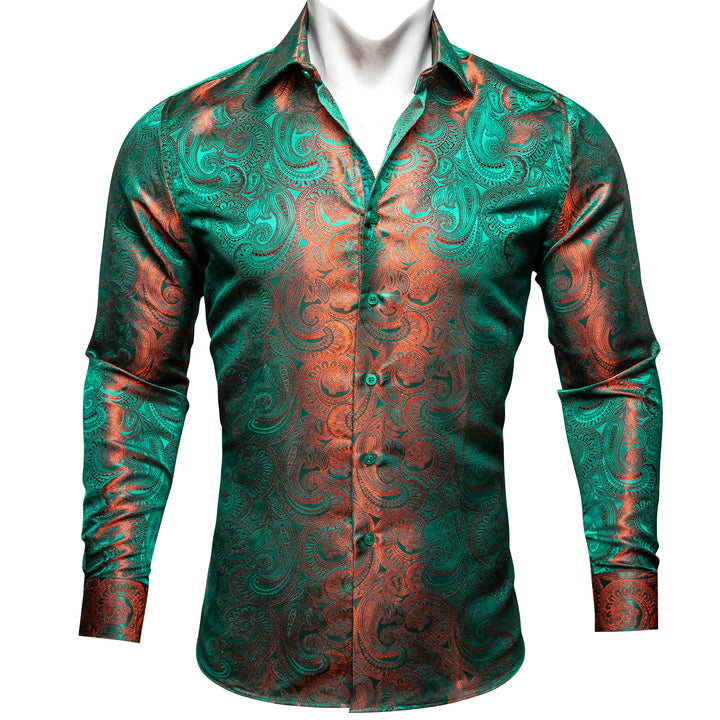 Green Orange Gradient Luxury Paisley Pattern Silk Men's Long Sleeve Shirt