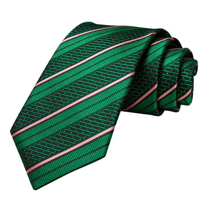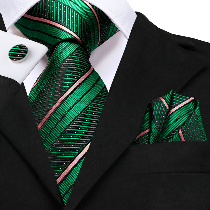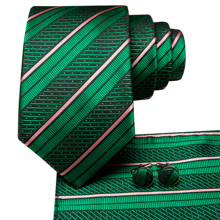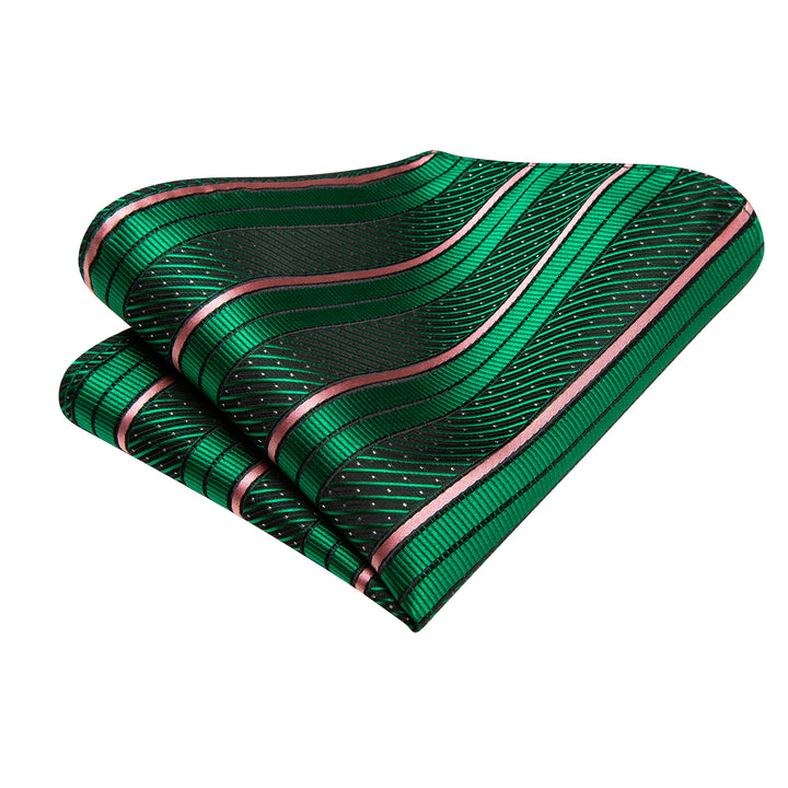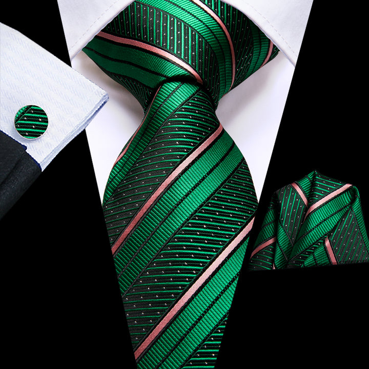 Ties2you Silk Hunter Green Necktie Pink Striped Business Tie Pocket Square Cufflinks Set