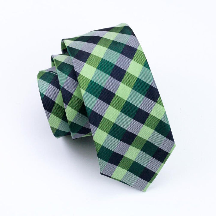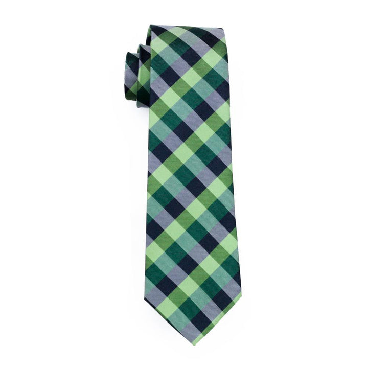 Green Plaid Silk Men's Tie Pocket Square Cufflinks Set
