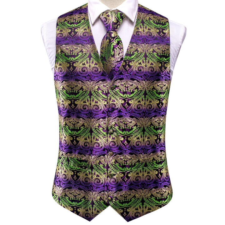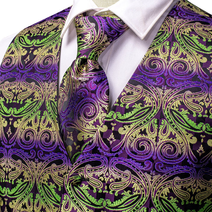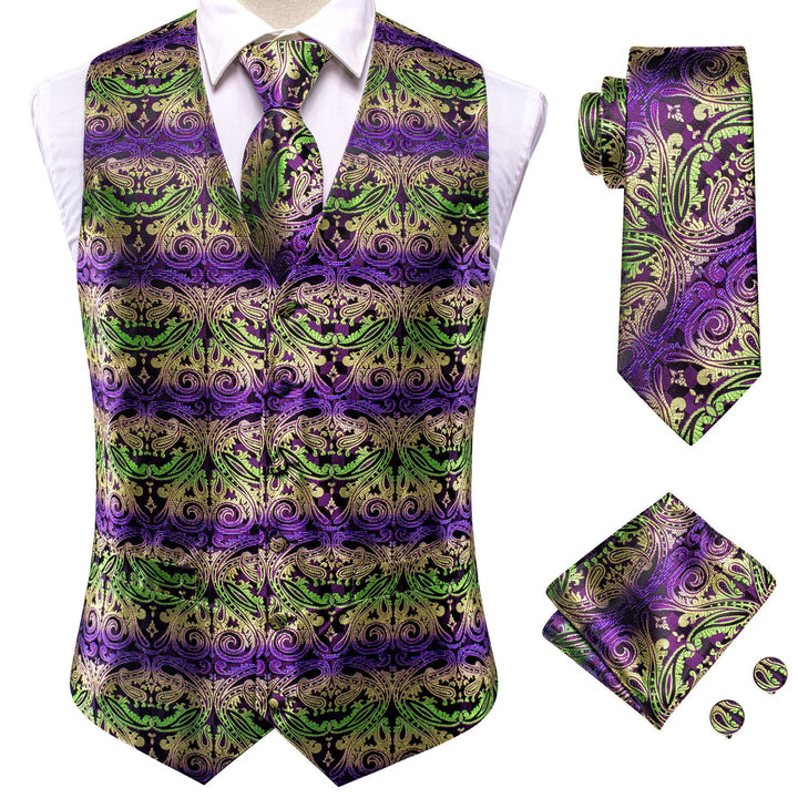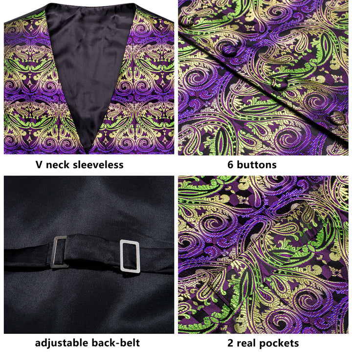 Ties2you Silk Paisley Dress Vest Purple Gold Green Suit Vest Tie Handkercheif Cufflinks Set