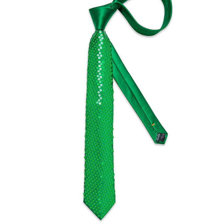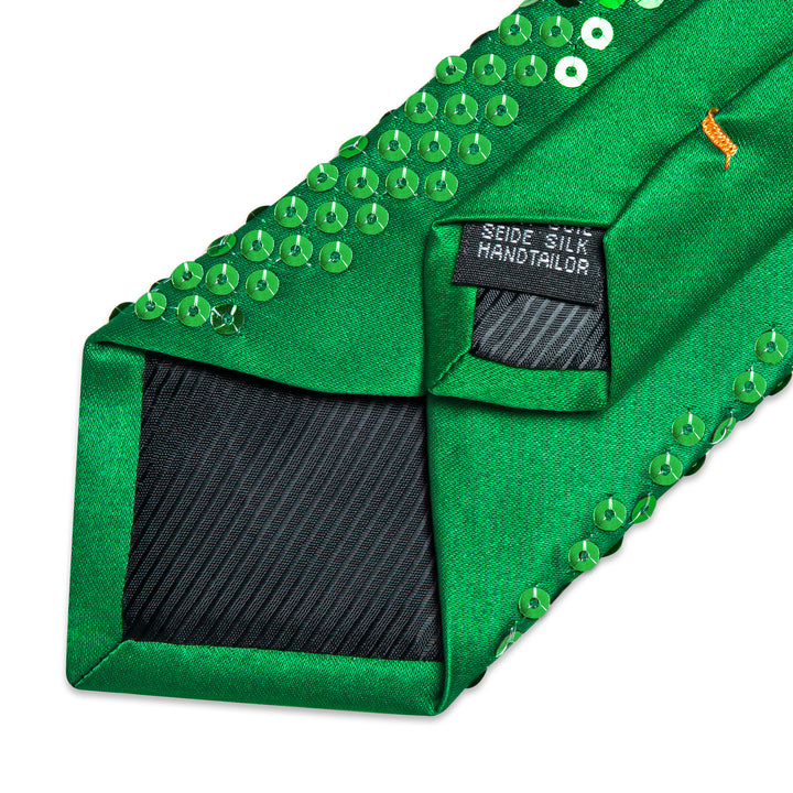 Green Sequins Novelty Men's Necktie Hanky Cufflinks Set