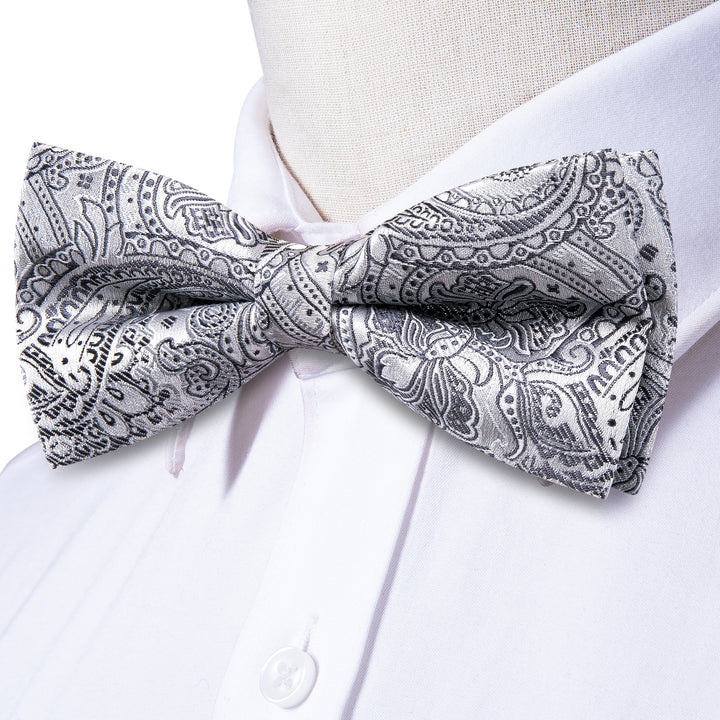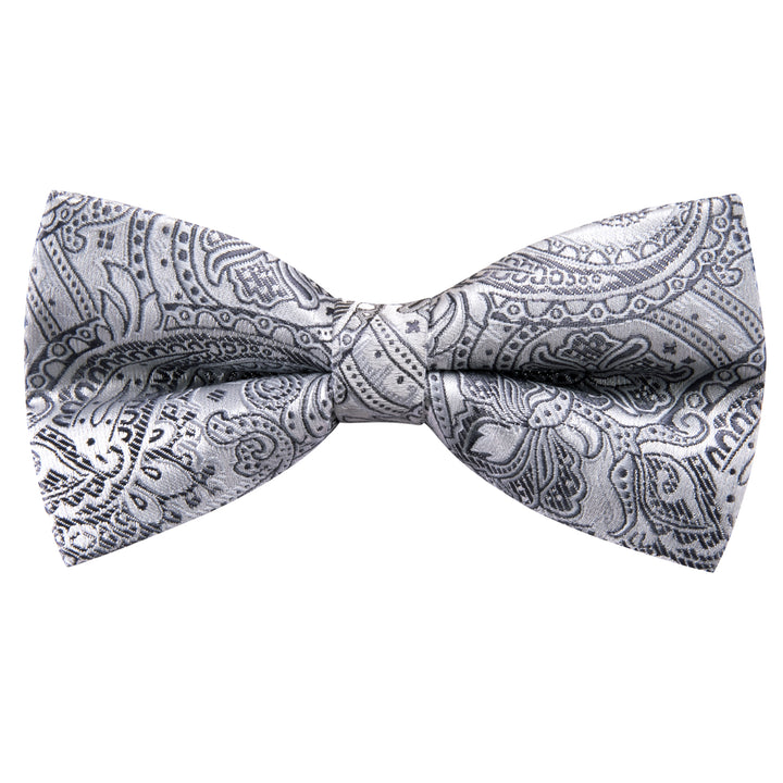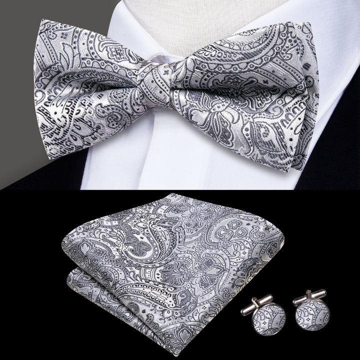 Ties2you Men's Paisley Grey Bow Tie Pre-tied Wedding Bowtie Handkerchief Cufflinks Set